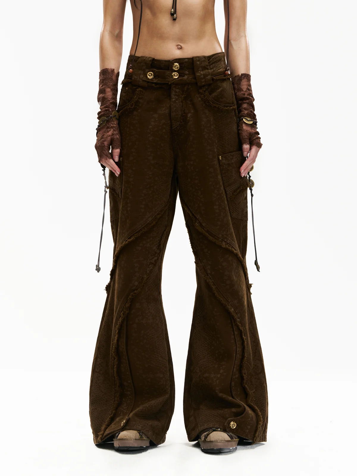 Personsoul Brown Snake Print Denim Jeans
