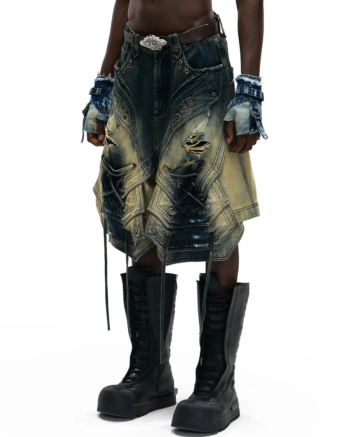 Personsoul Scaled Corded Denim Shorts