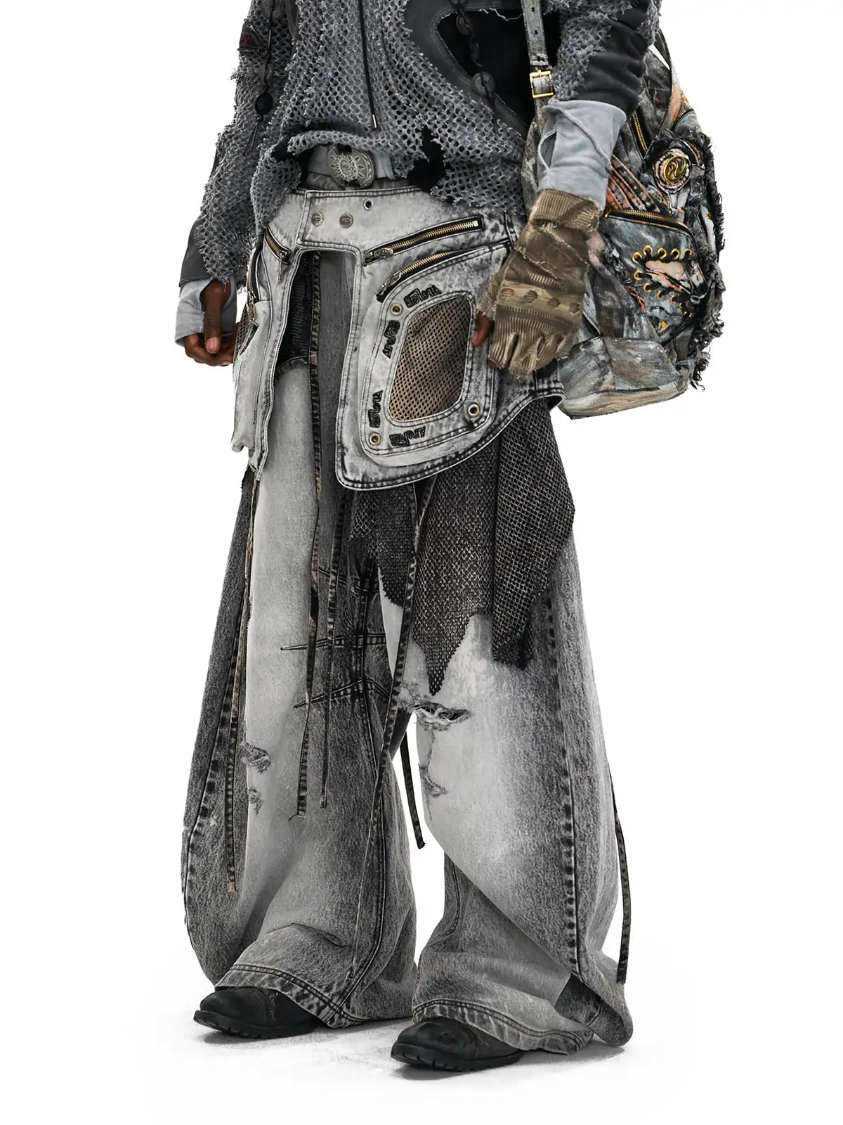 Personsoul Deconstructed Exaggerated Flared Patchwork Jeans Yin-Yang Ver. (Random Color)