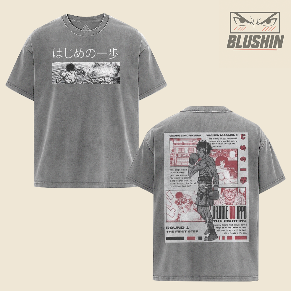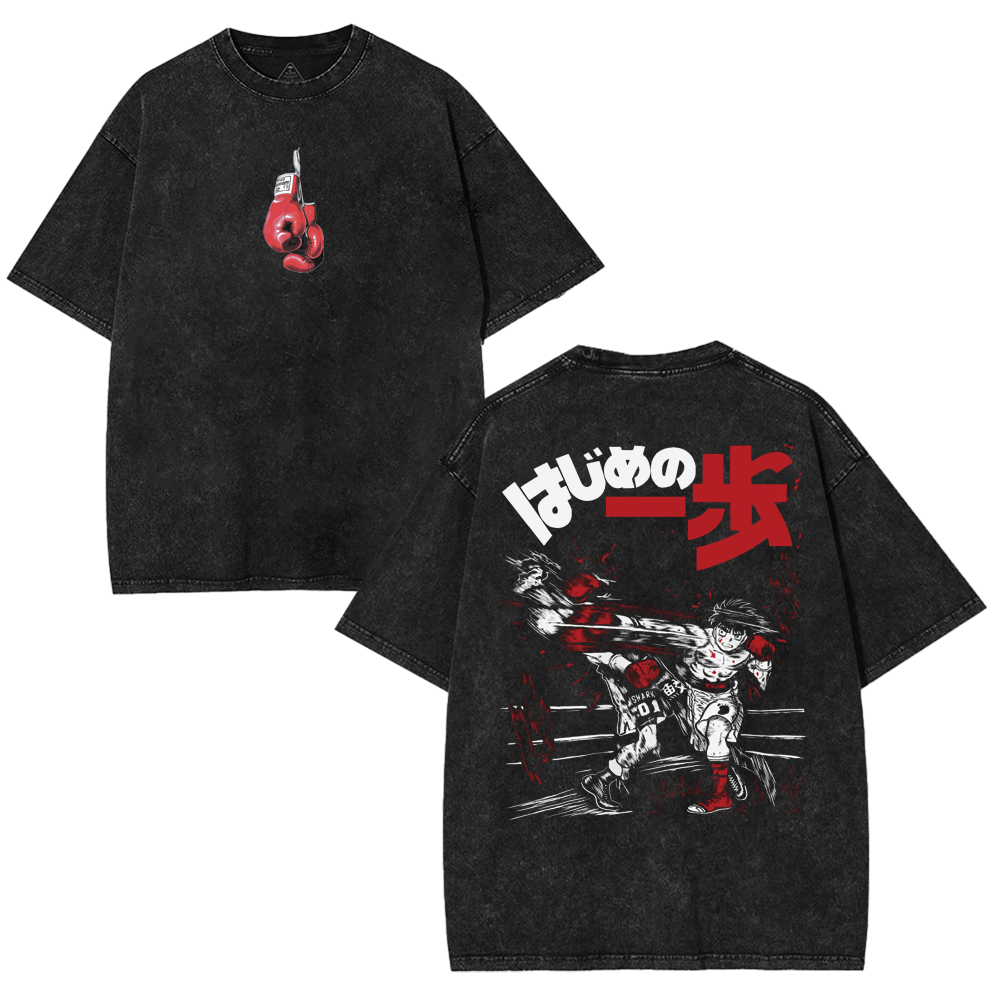 "Dempsey Roll Origin" Ippo Makunouchi Hajime no Ippo Boxing – Washed Tee Cotton Menswear Top | SEP 37