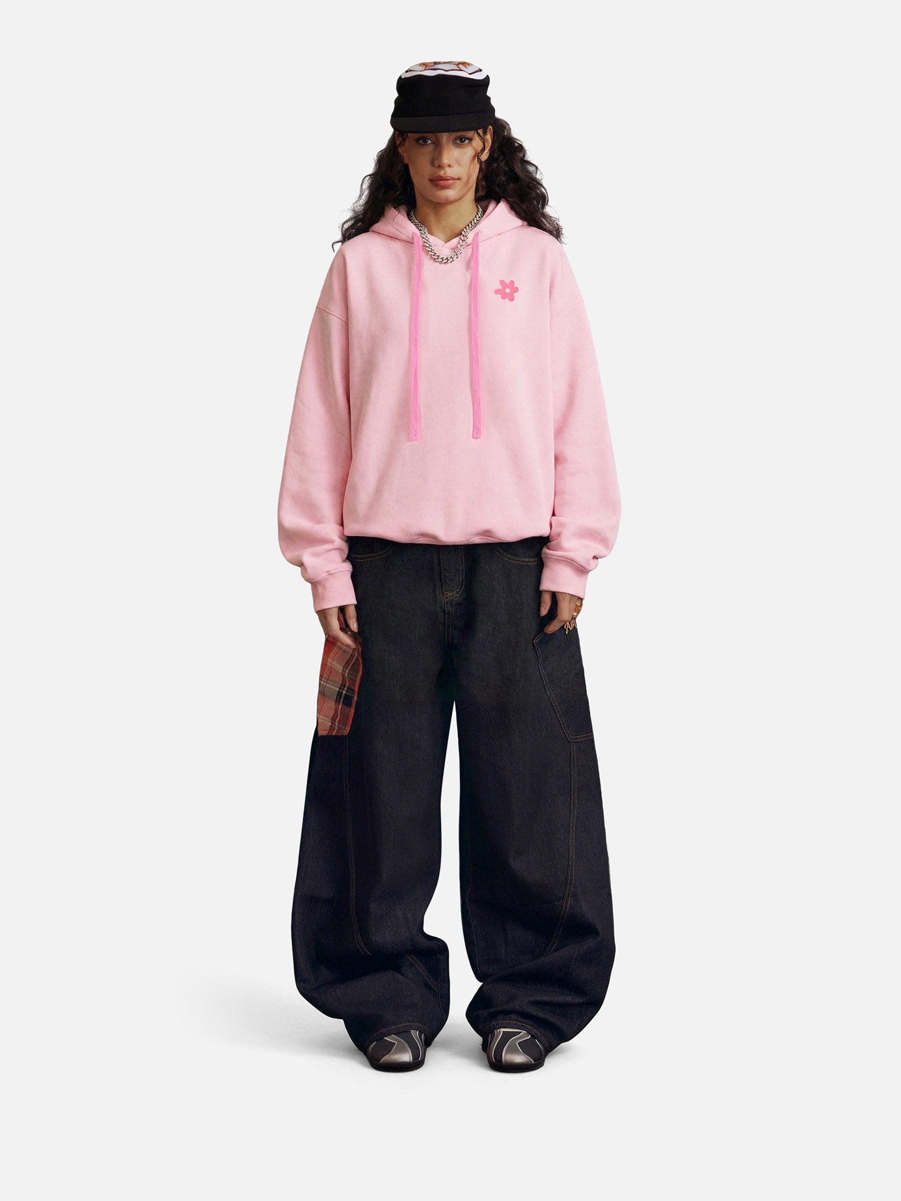 Stand out with this pullover hoodie's striking strawberry floral graphic that brings personality to your wardrobe. The oversized cut ensures all-day comfort while the bold design elevates your casual look. Soft, breathable fabric makes it ideal for layering or wearing solo. A must-have piece for streetwear enthusiasts seeking comfort without compromising on style.