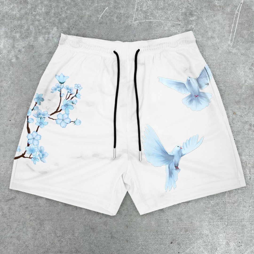 Art Dove Sakura Pattern Casual Shorts