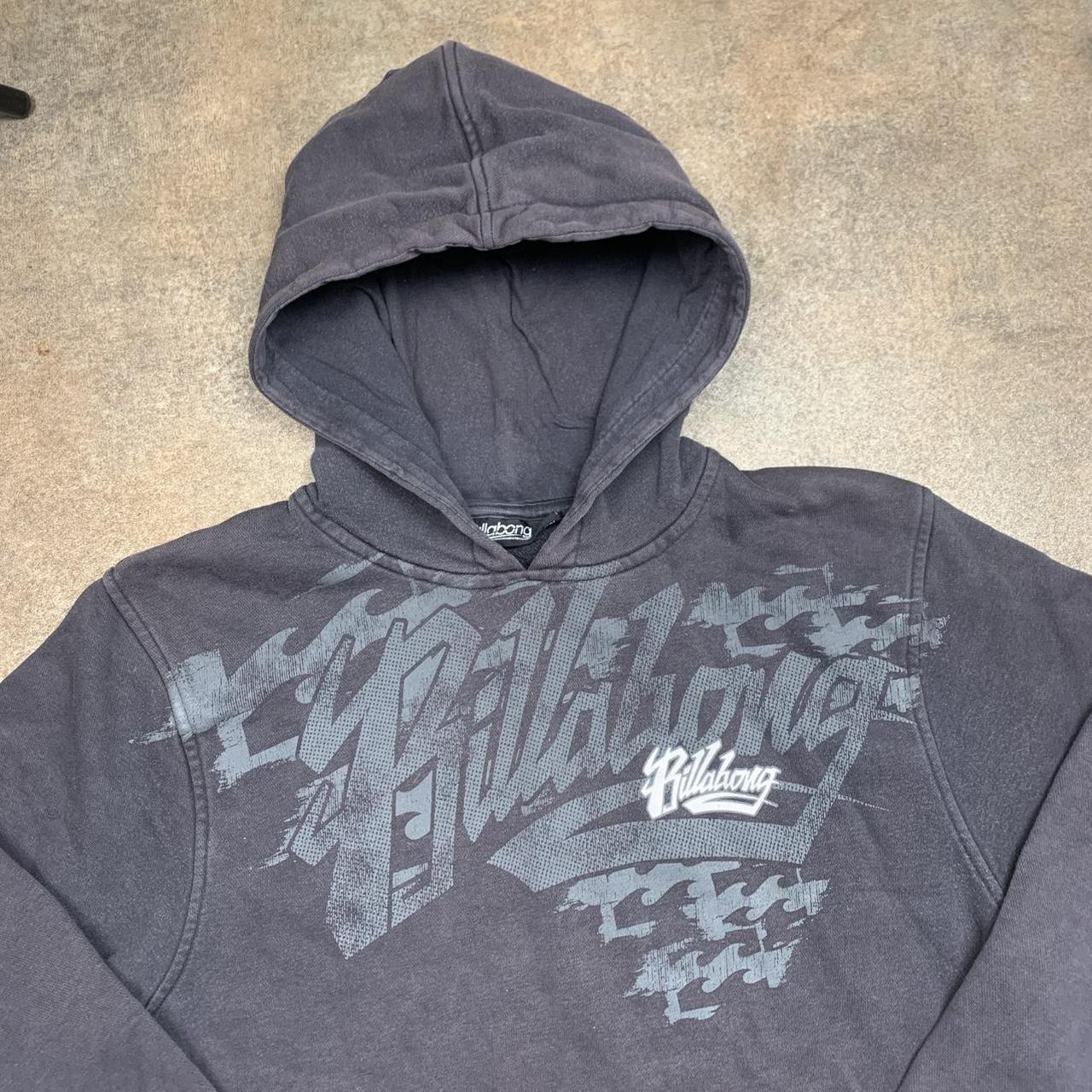Vintage Billabong hoodie with a large graphic on the front, coloured grey all over & in great second hand condition with fading from age.