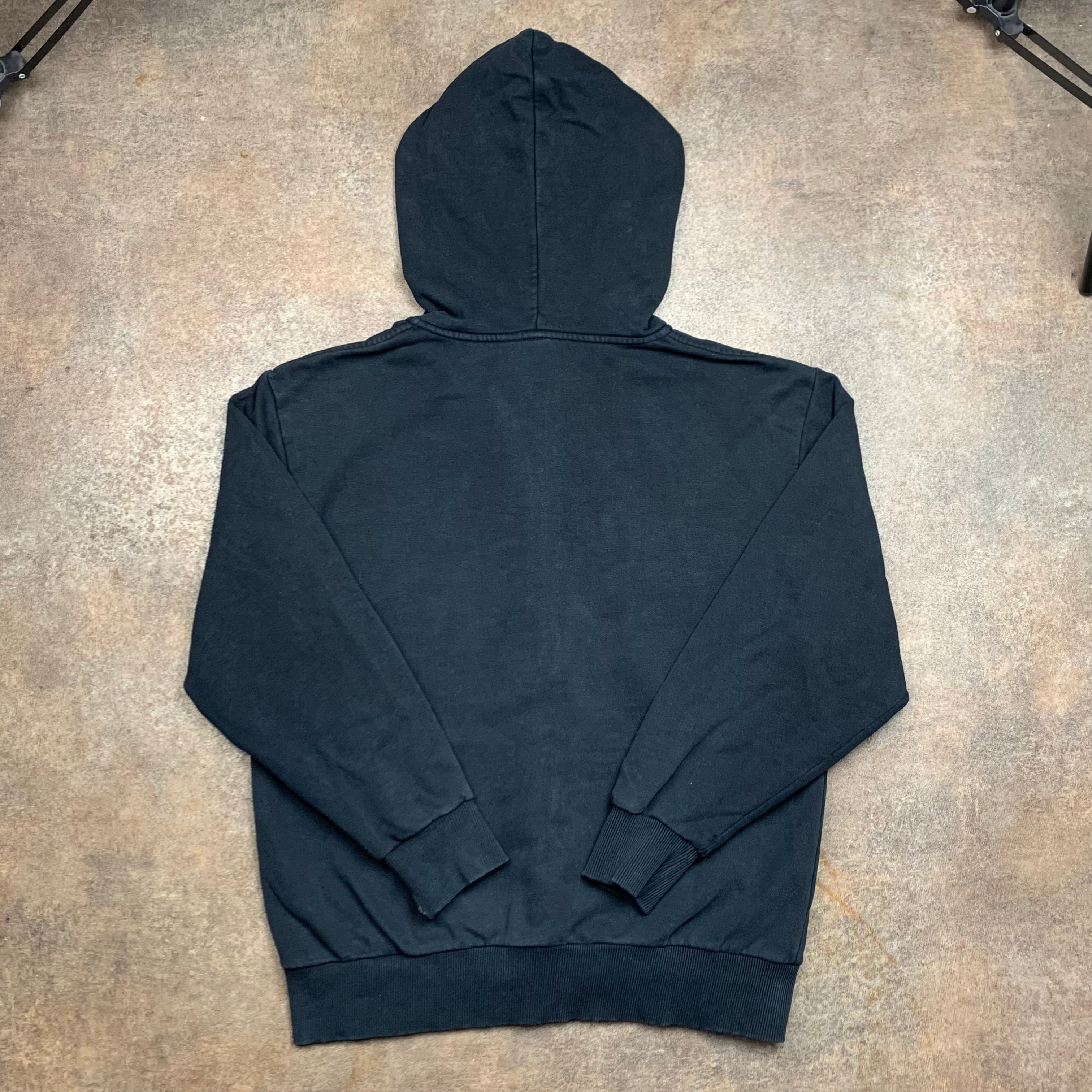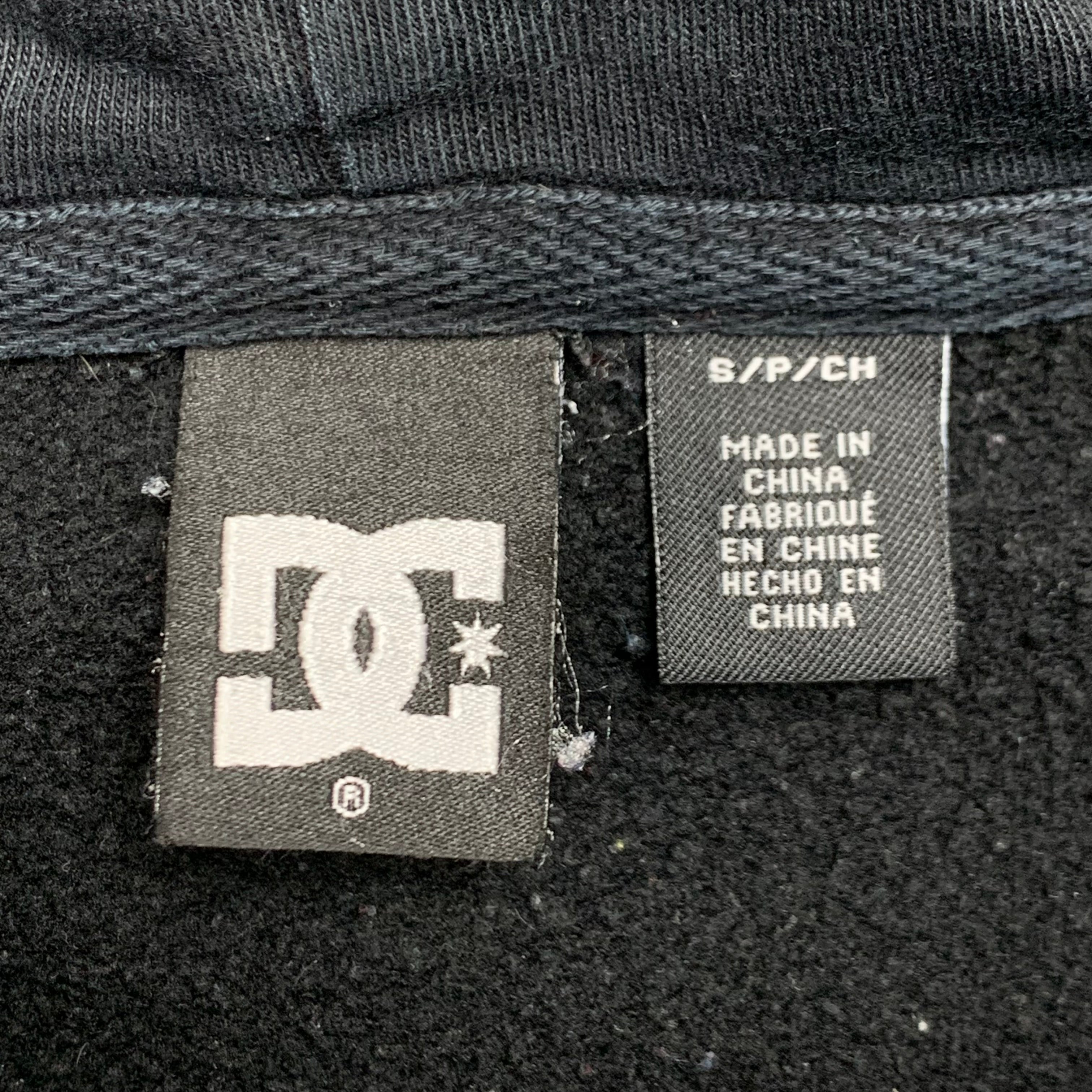 Vintage DC hoodie with a white big star logo through the zip, coloured black all over & in great second hand condition with some small rips to the sleeve cuffs as shown.