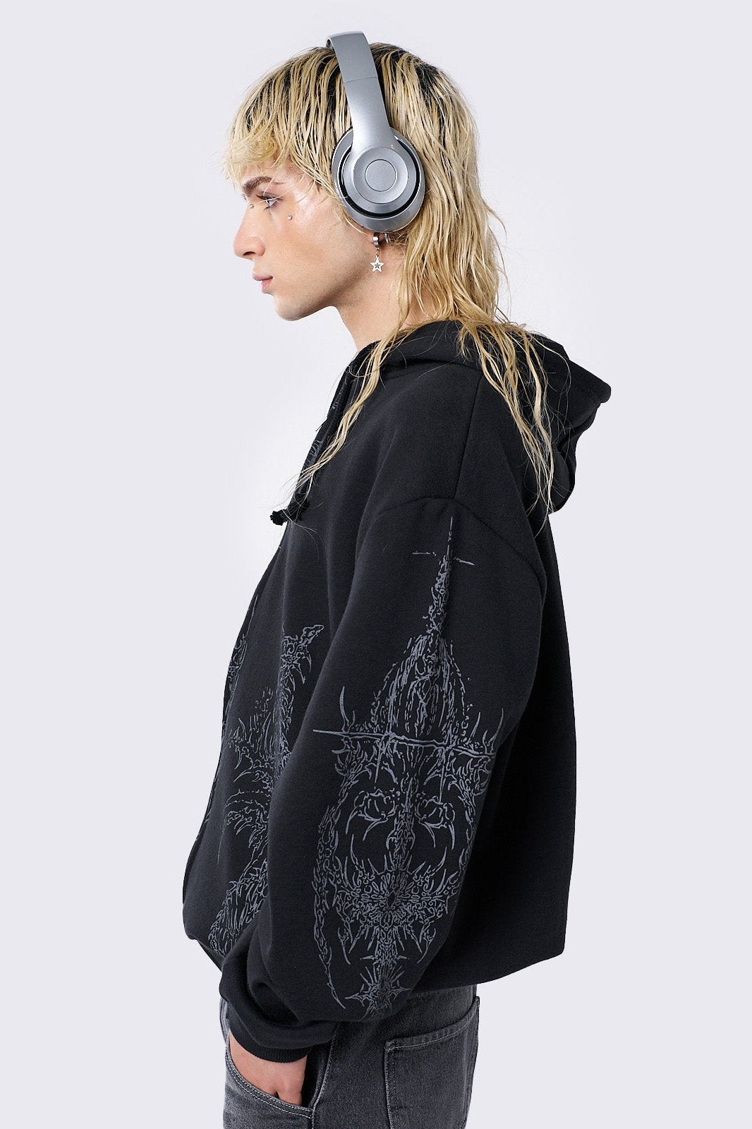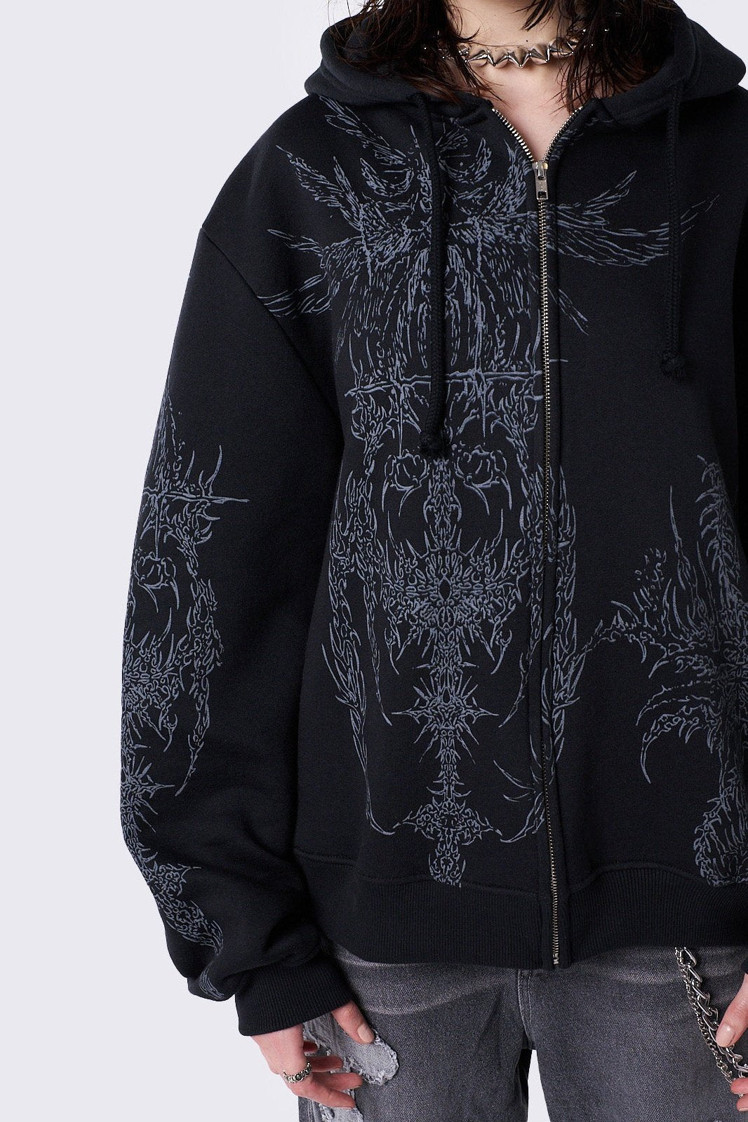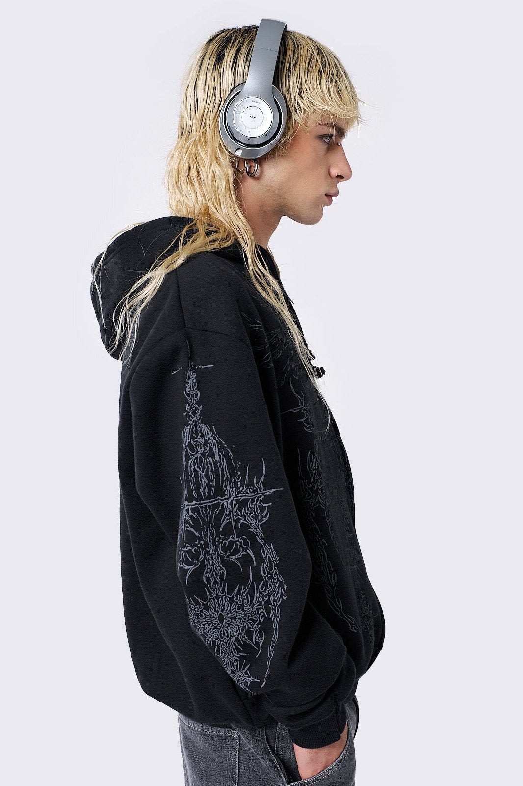 - Grunge graphic front and sleeves print