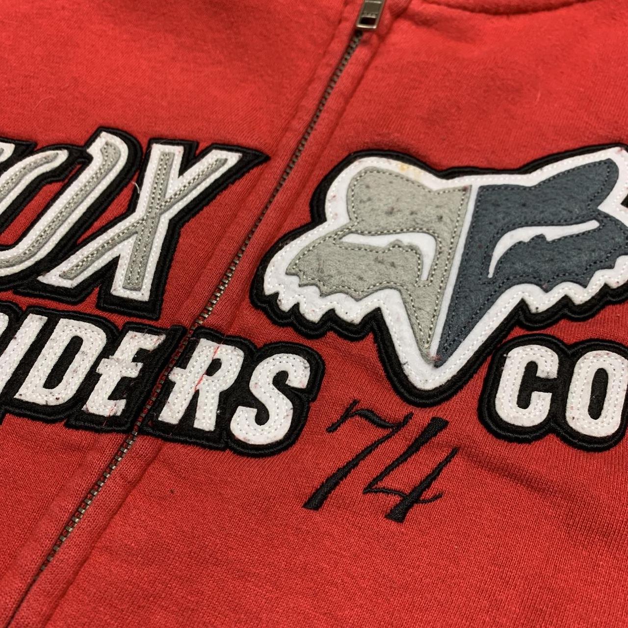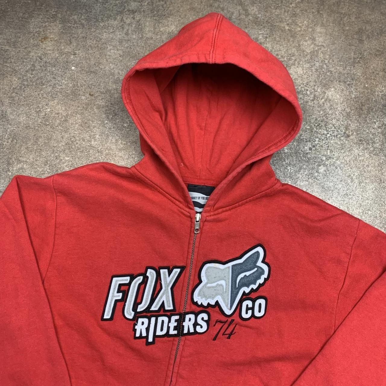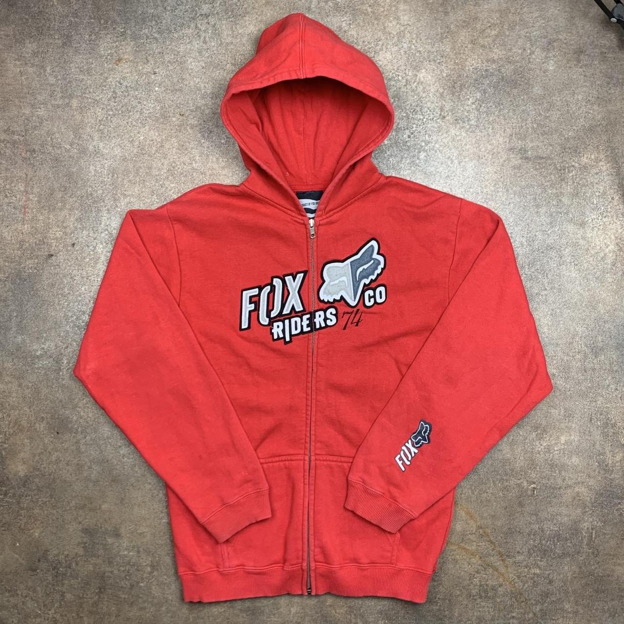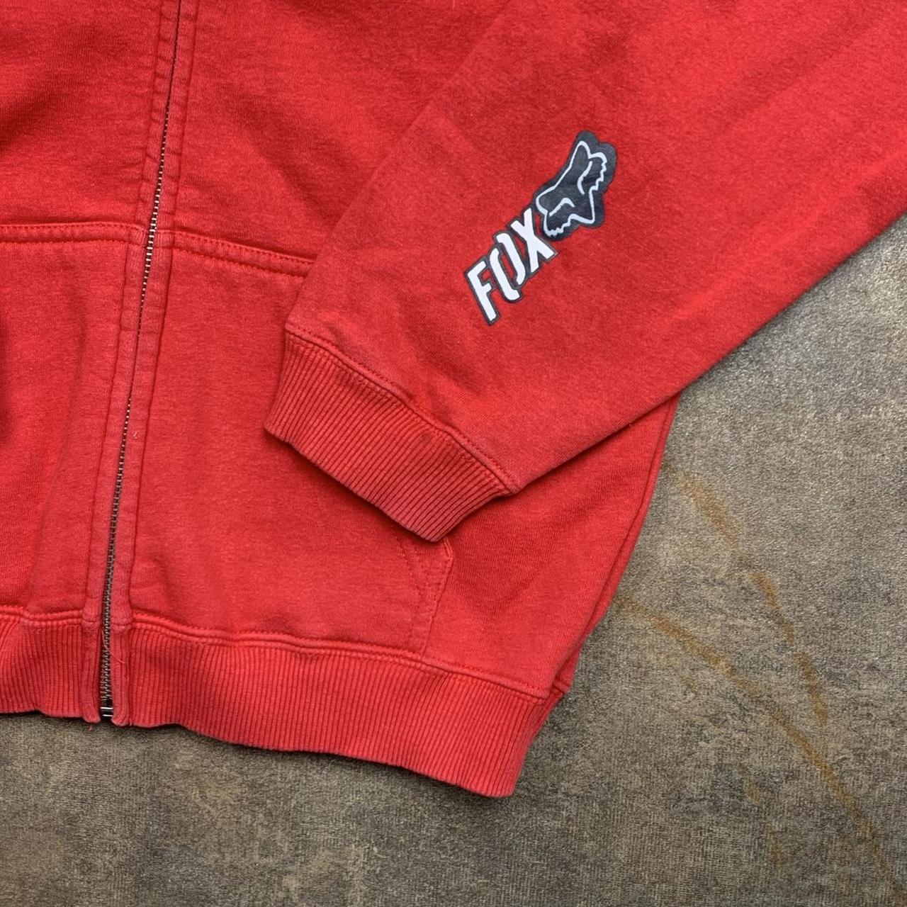 Fox Racing hoodie perfect for the winter with a large cut & sewn graphic across the zip on the front coloured black, white & grey, coloured red all over & in excellent second hand condition with minimal wear and shrinkage.