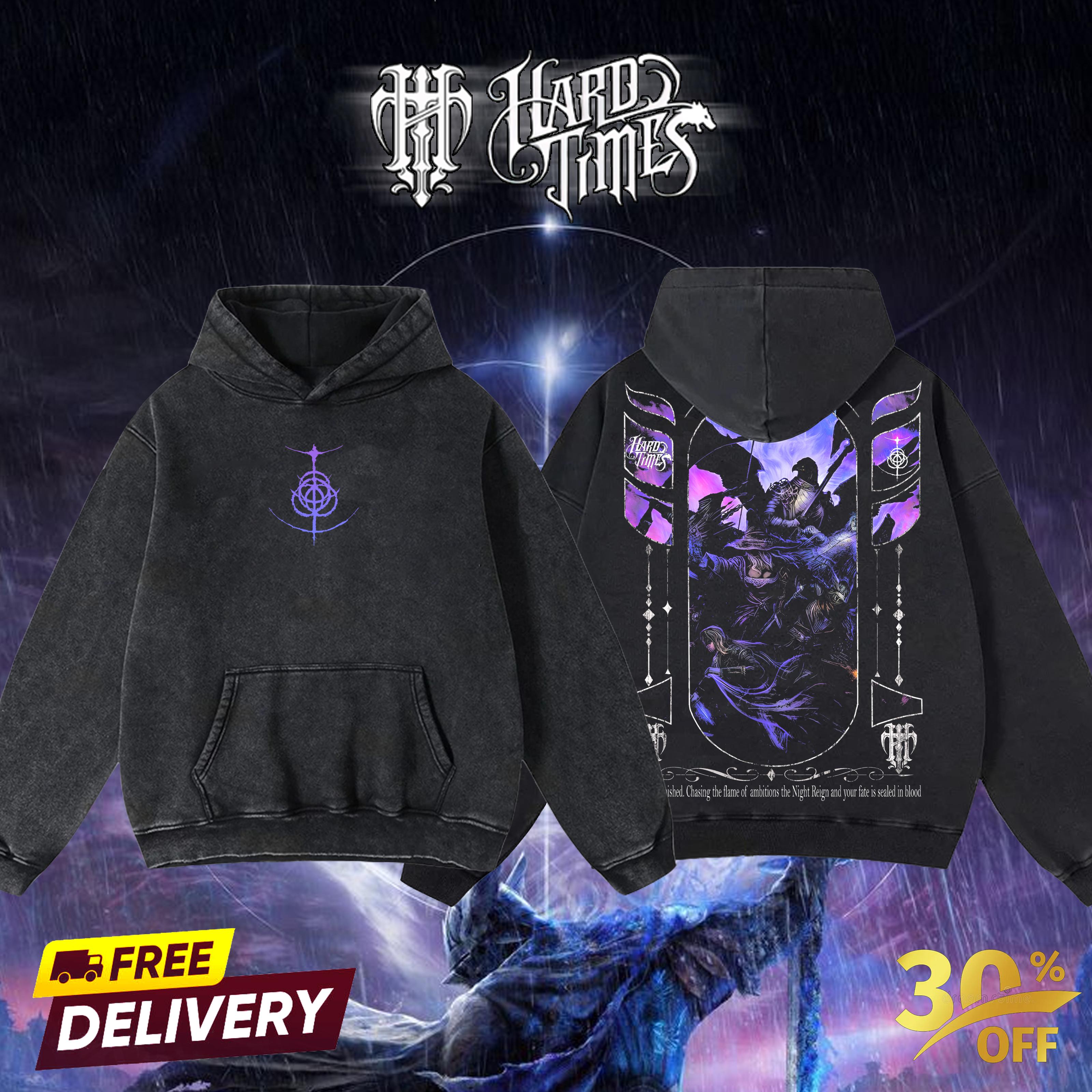 HardTimesClothing EldenRing NightRegin Retro Vintage Unisex Oversize Anime Manga Acid Washed Heavyweight Cotton T-shirt, Anime Merch, Gift For Anime Fan. Menswear Oversized