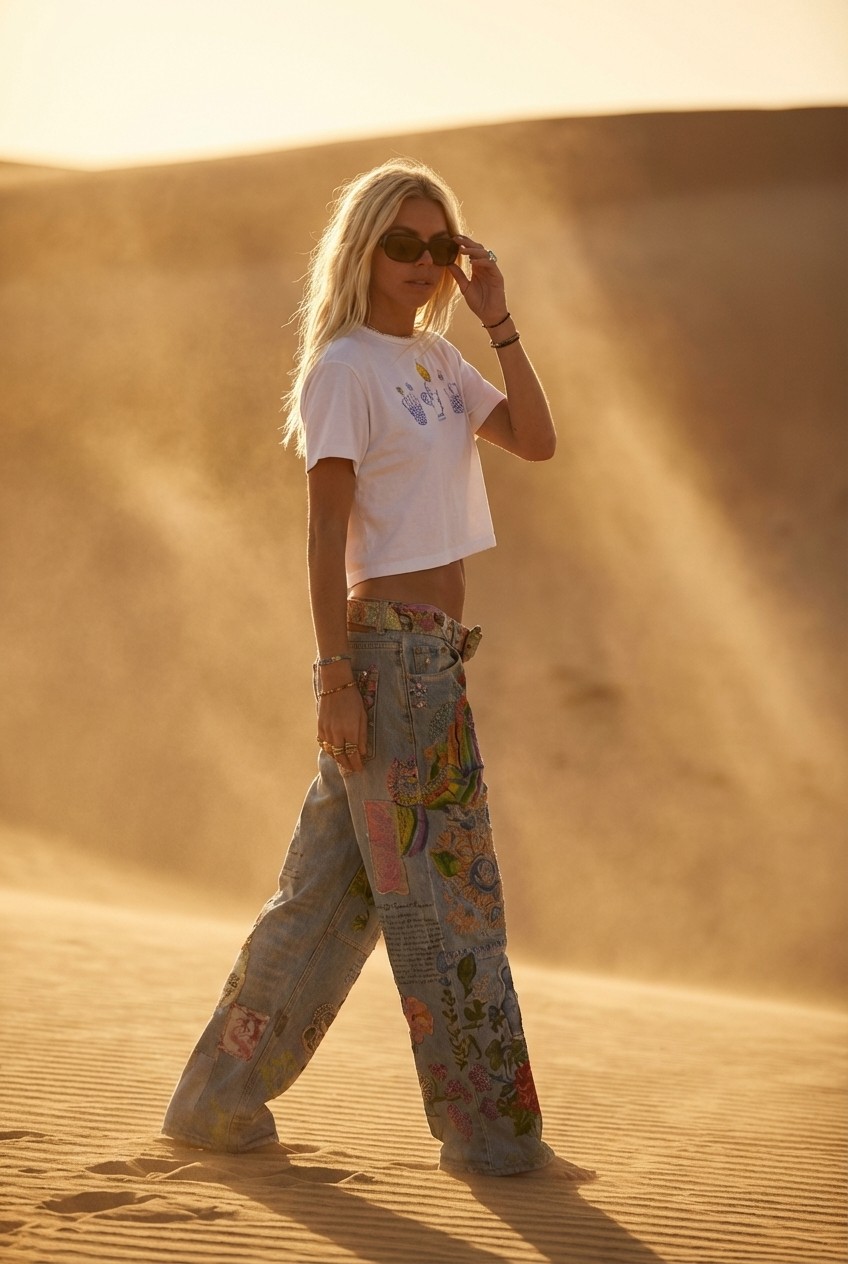 Pair with a fitted crop top or baby tee to balance proportions, or layer with an oversized jacket for full street-art attitude.