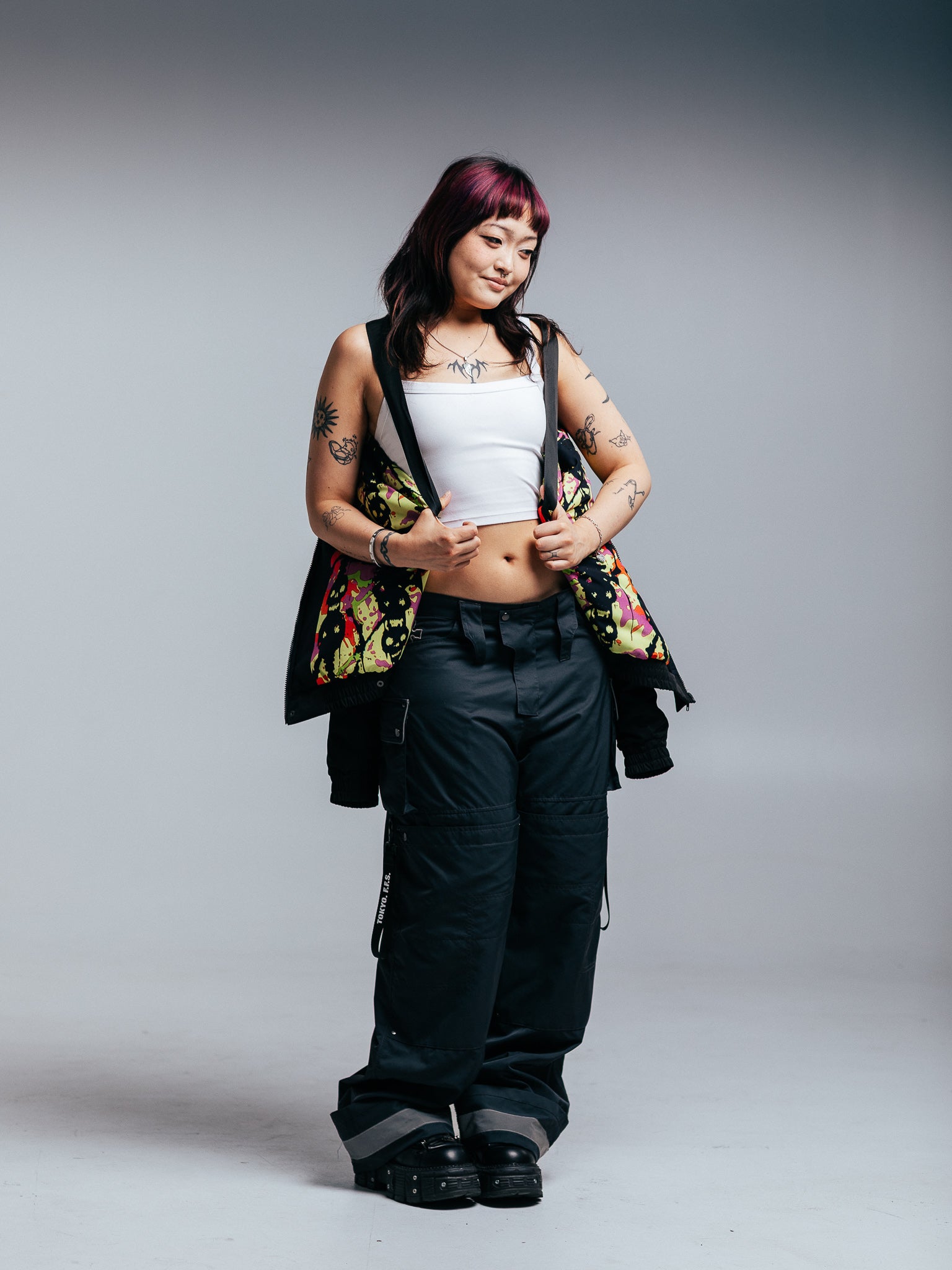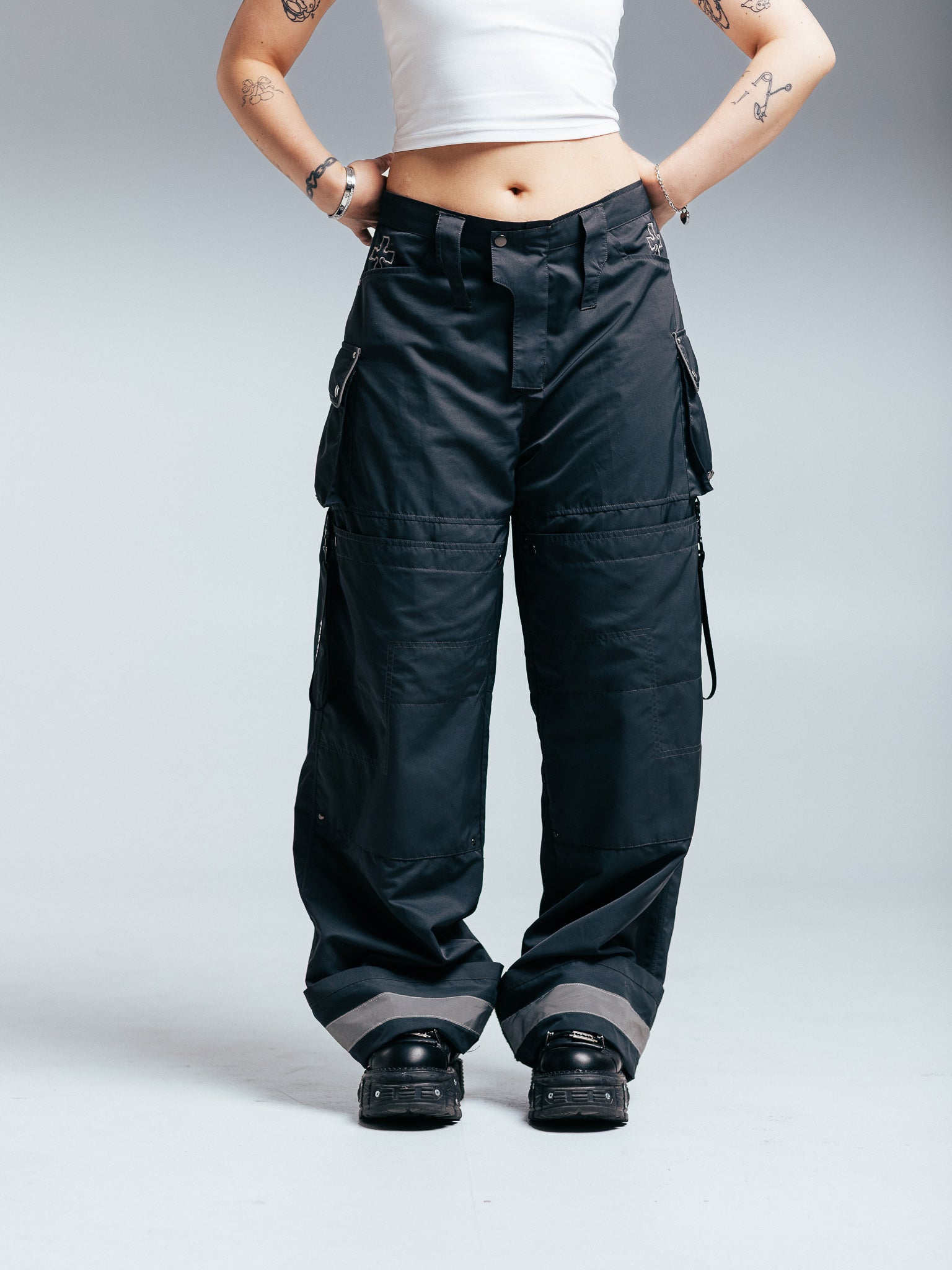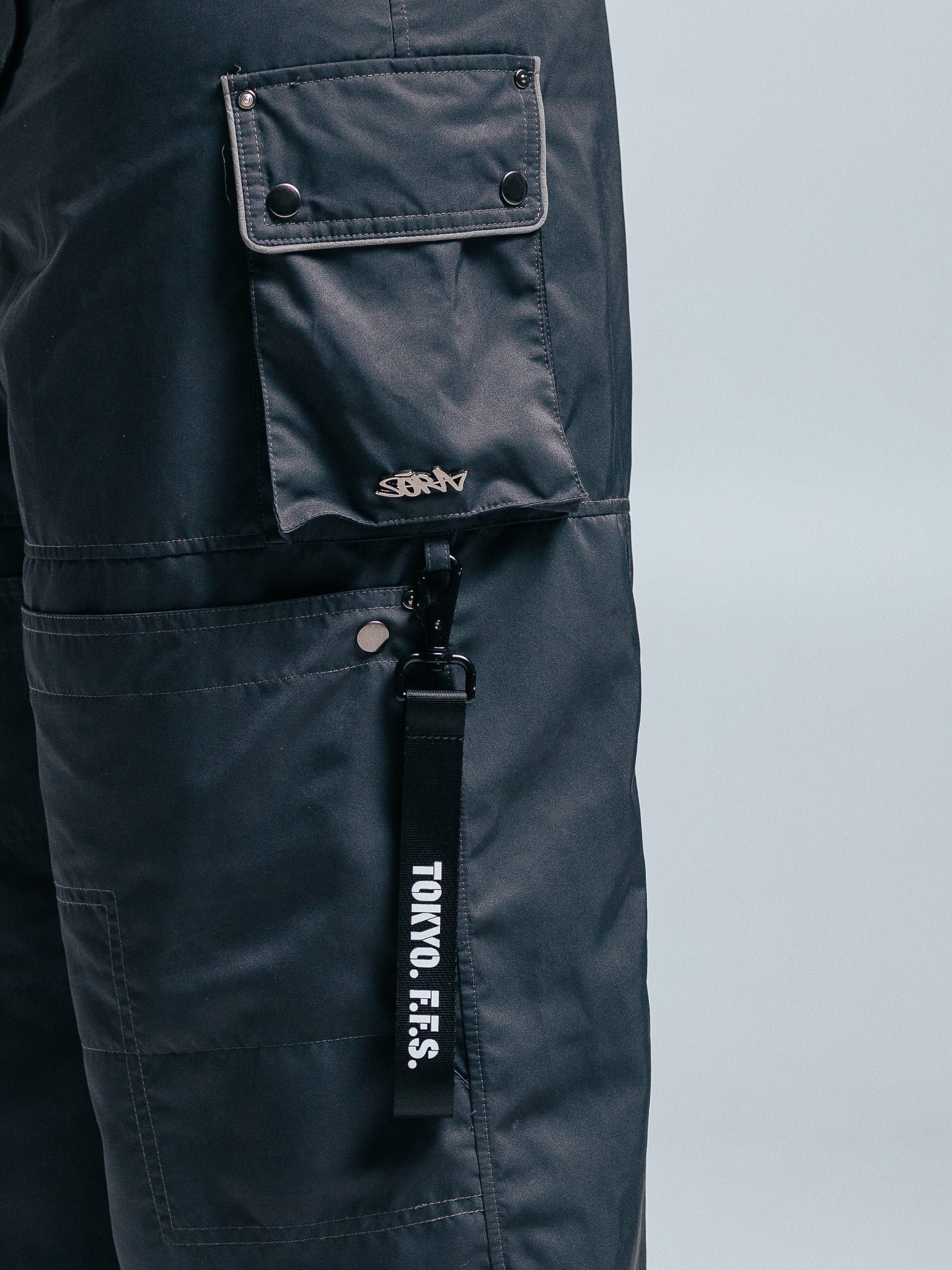 These pants are made of polyester with button pockets on each side. Reflective lines are on the pockets and the bottom of the pants. Embroideries on the front end back. Comes with the keychains on both sides.