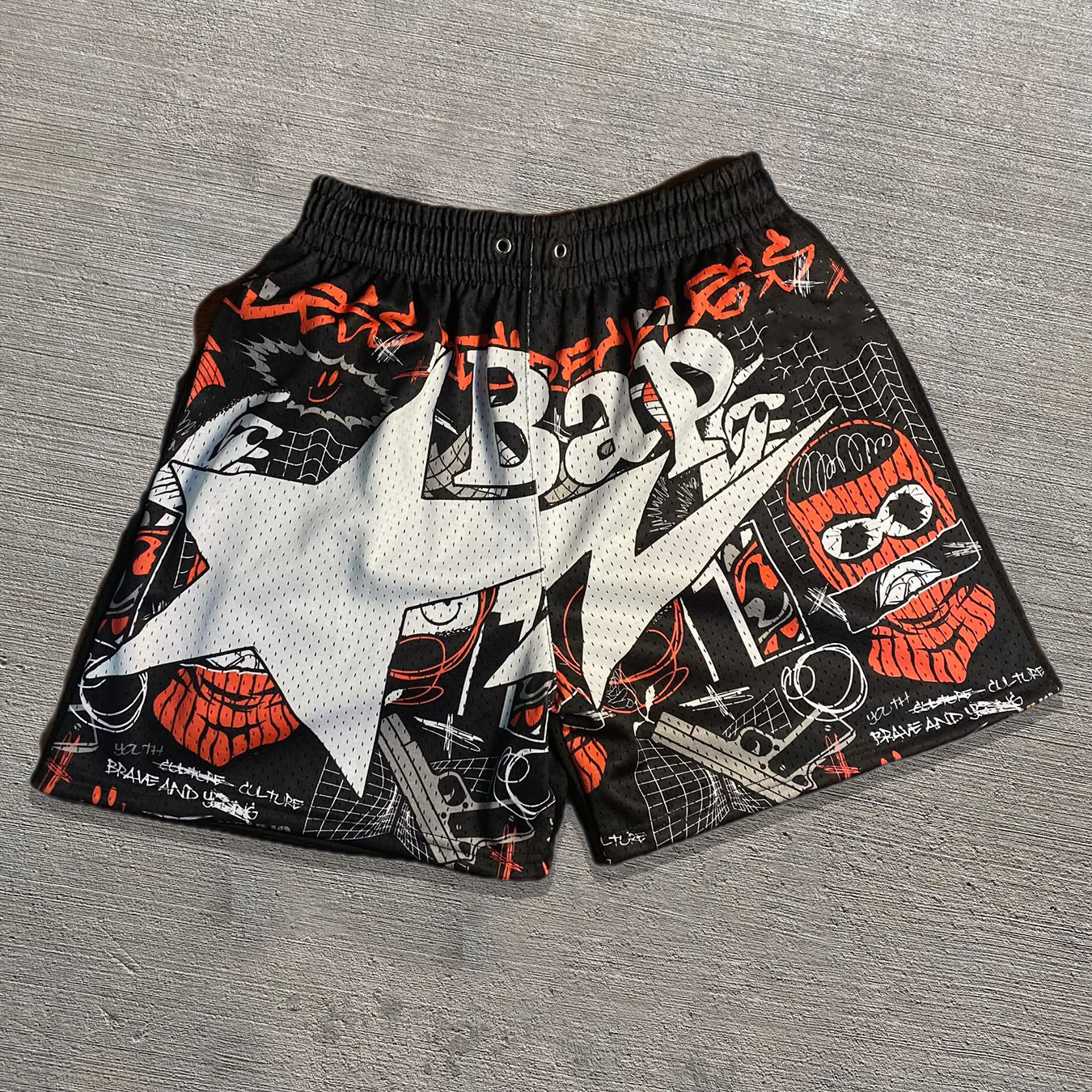 Lucky Star Casual Street Graffiti Retro Mesh Shorts