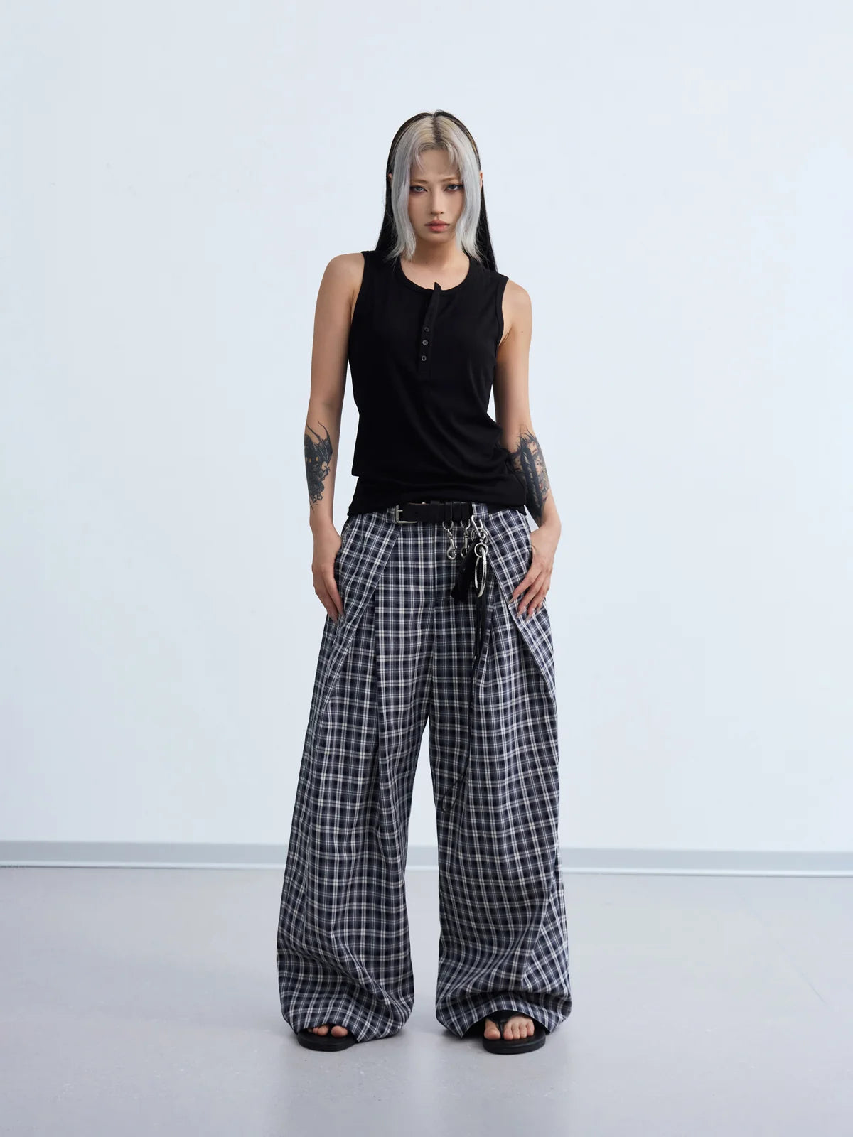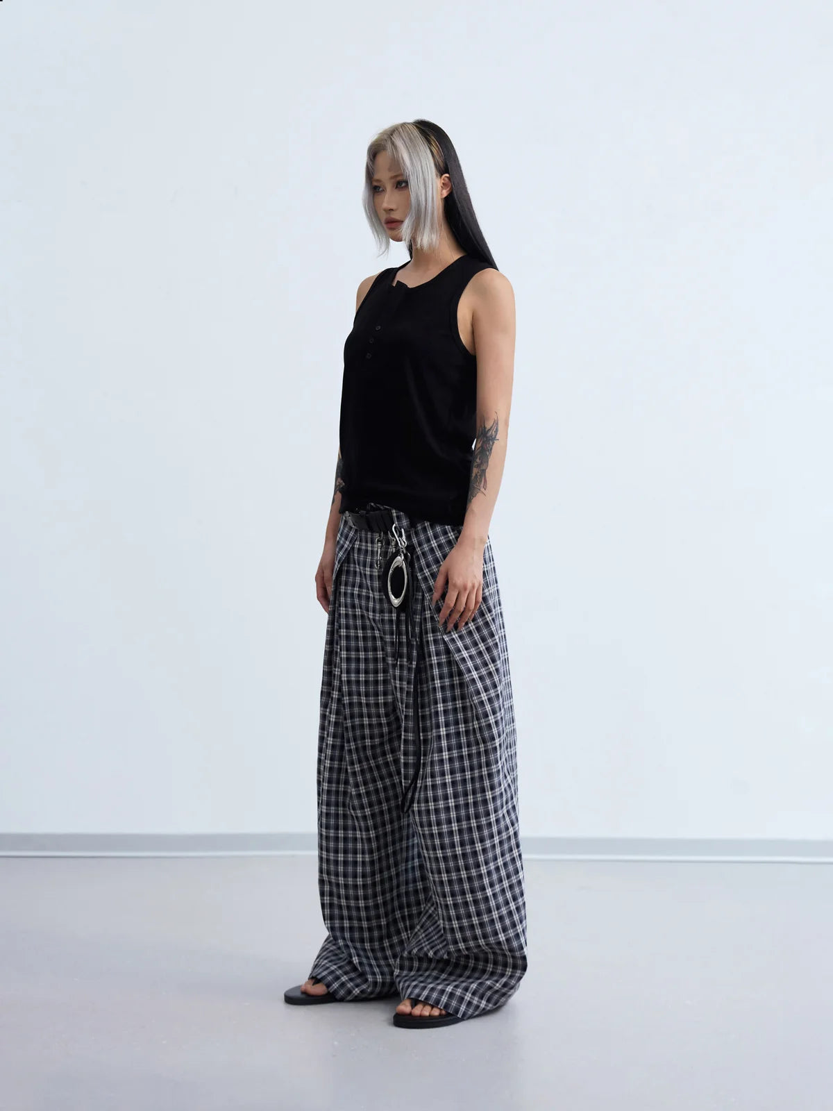 Peoplesense Curved Plaid Relaxed Trousers(Limited)