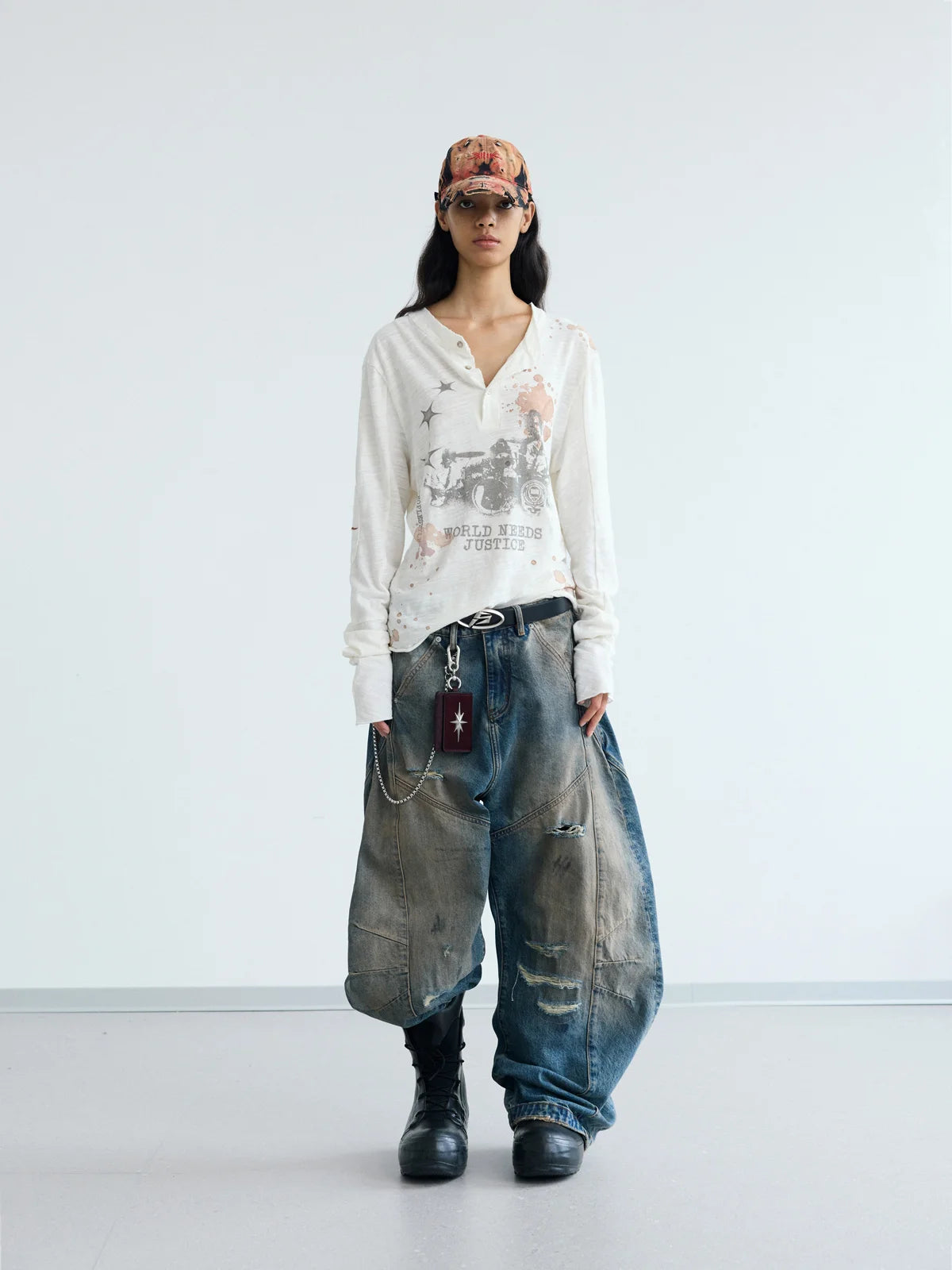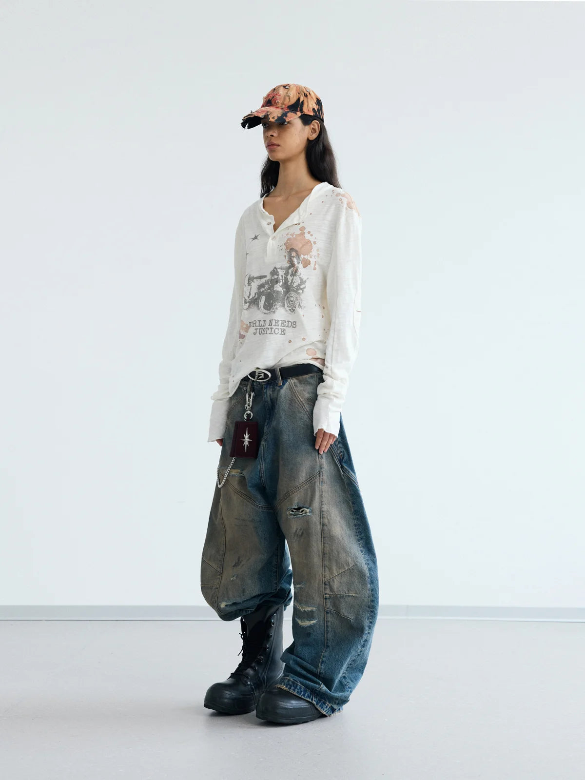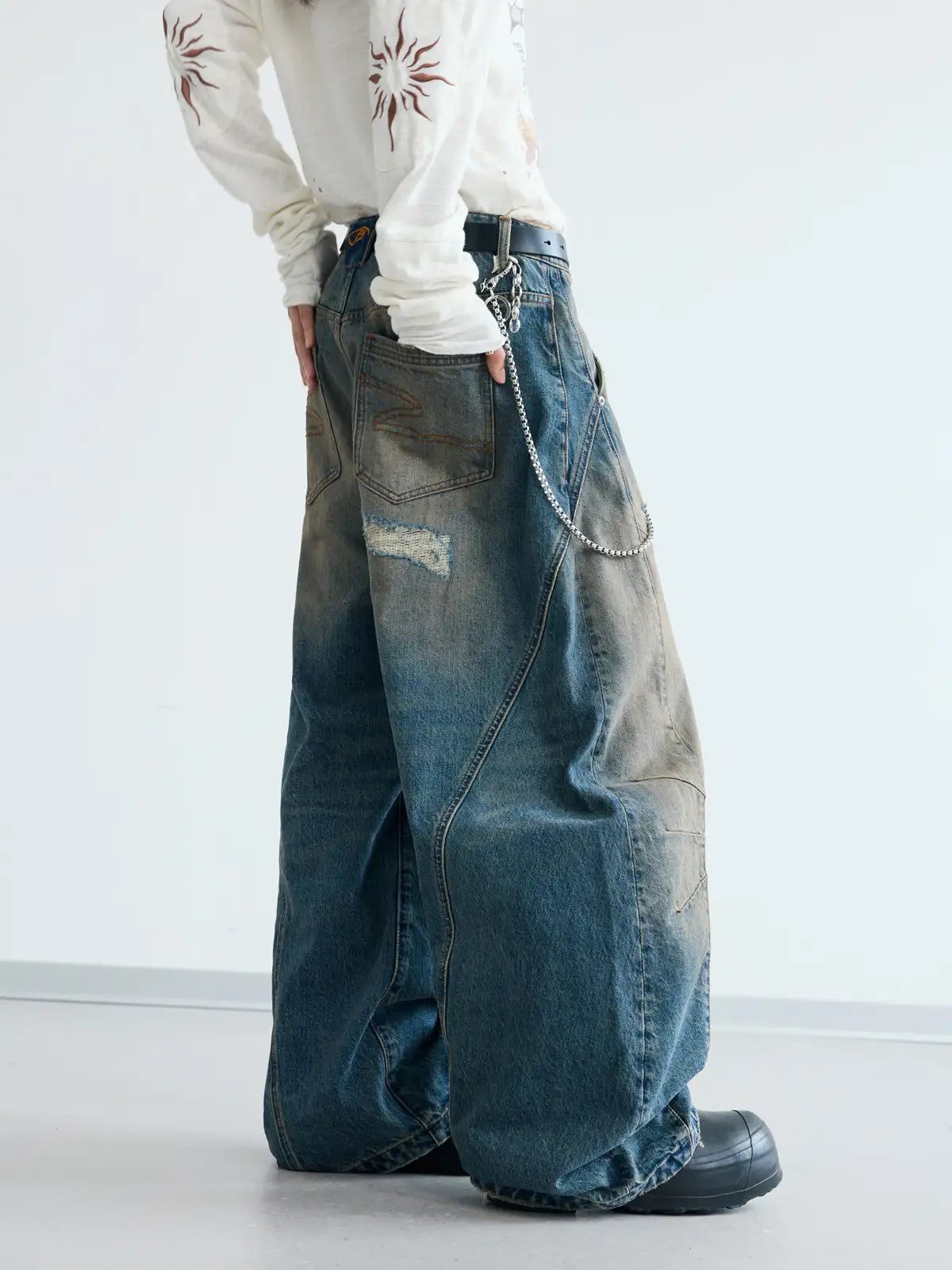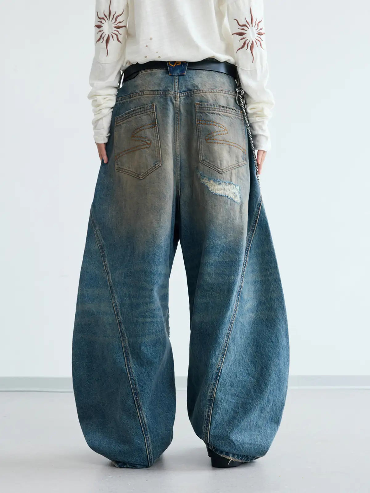 Peoplesense Ripped Mud Dyed Balloon Denim Jeans(Limited)