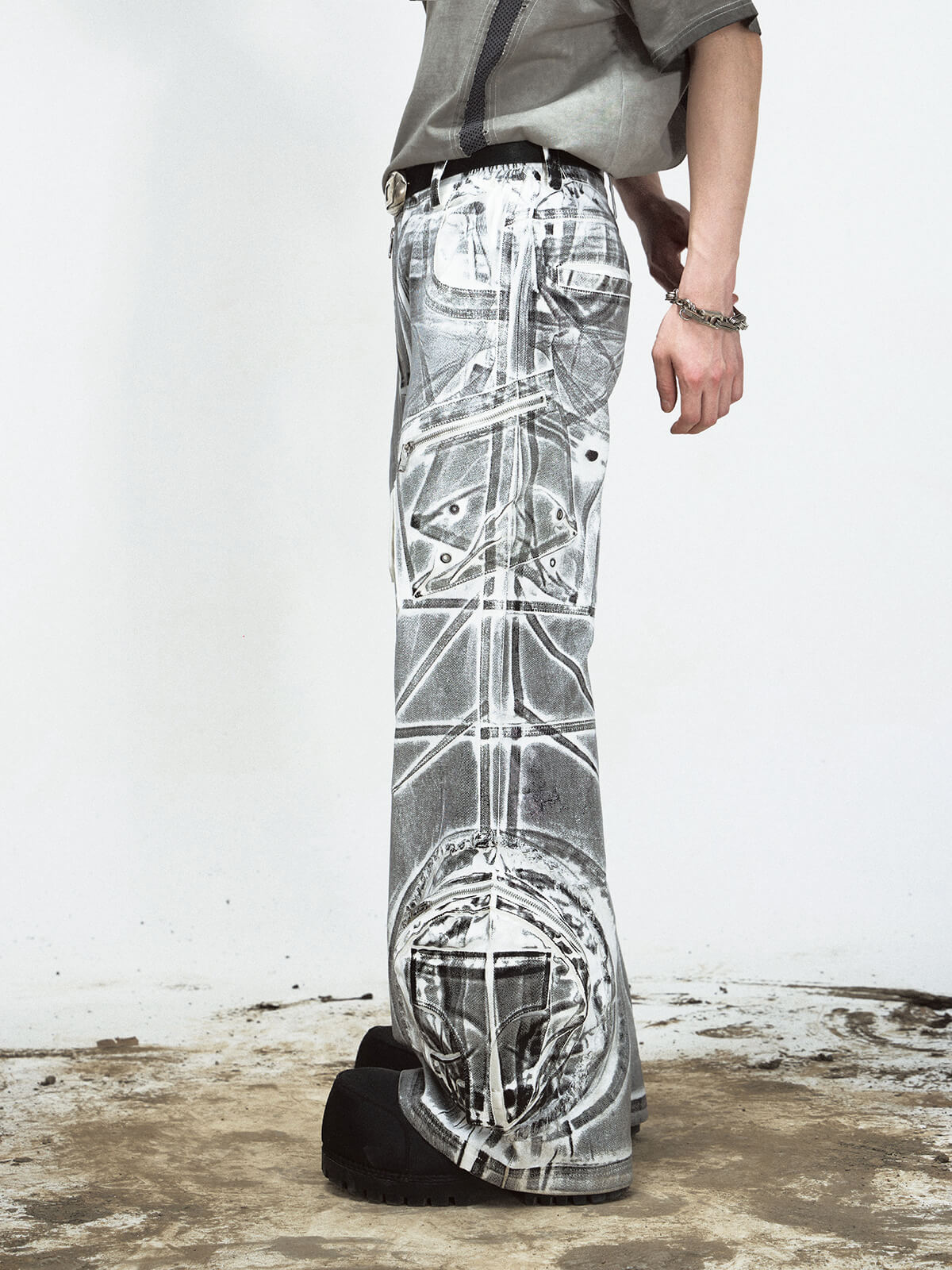 • Male model is 180cm/5′11″, weight 68kg/150lbs, waist 74cm/29in, hips 95cm/37in, wearing size L.