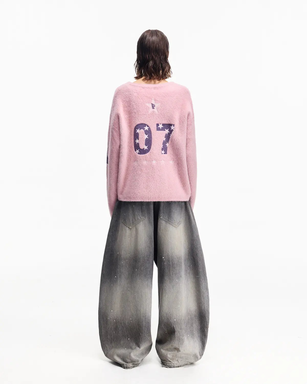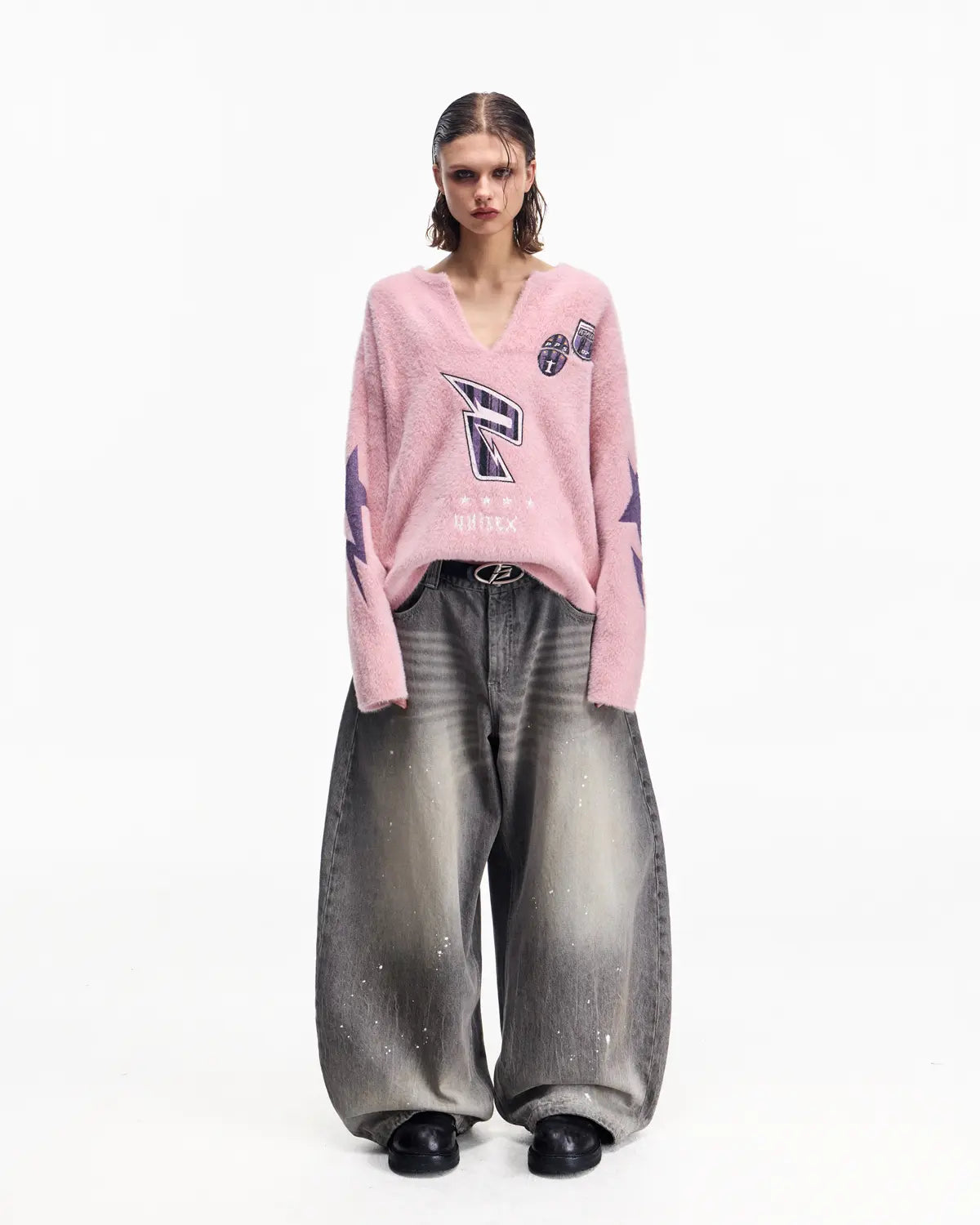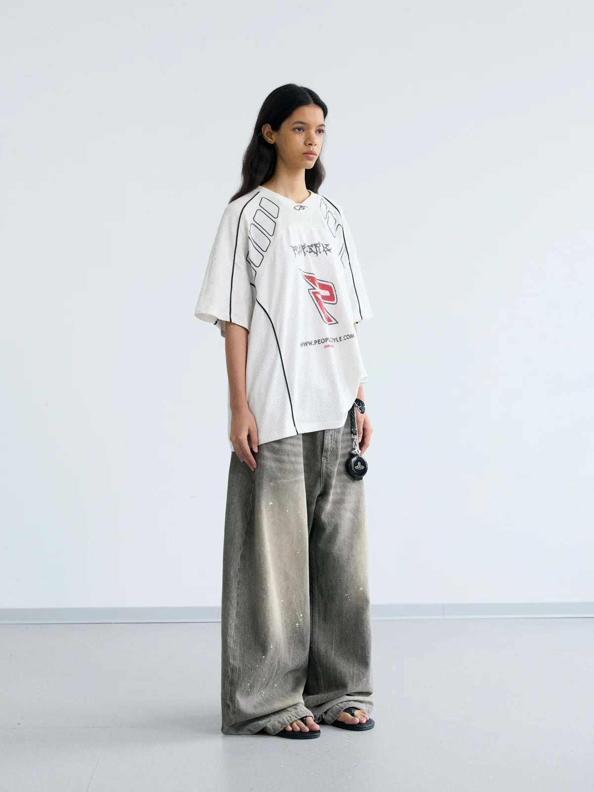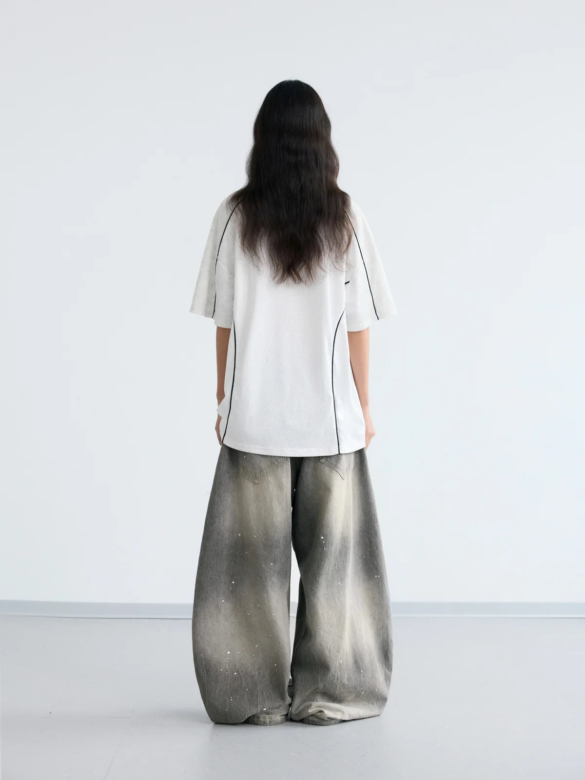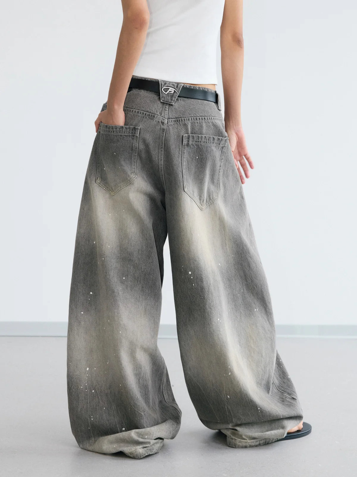 Peoplesense Vintage Ink-Splatter Grey Wide-Leg Jeans