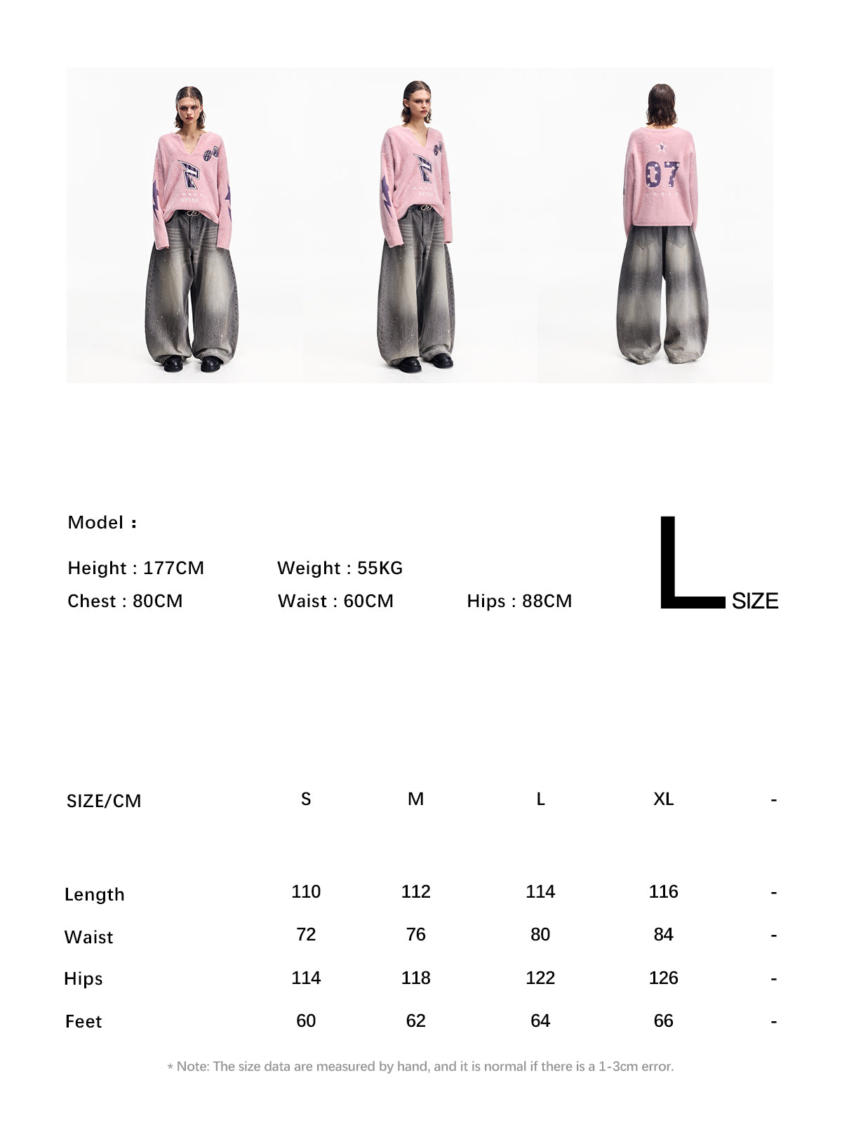 • Female model is 166cm/5′4″, weight 50kg/110lbs, waist 62cm/24in, hips 88cm/35in, wearing size S.
