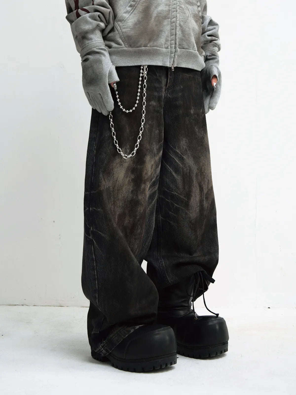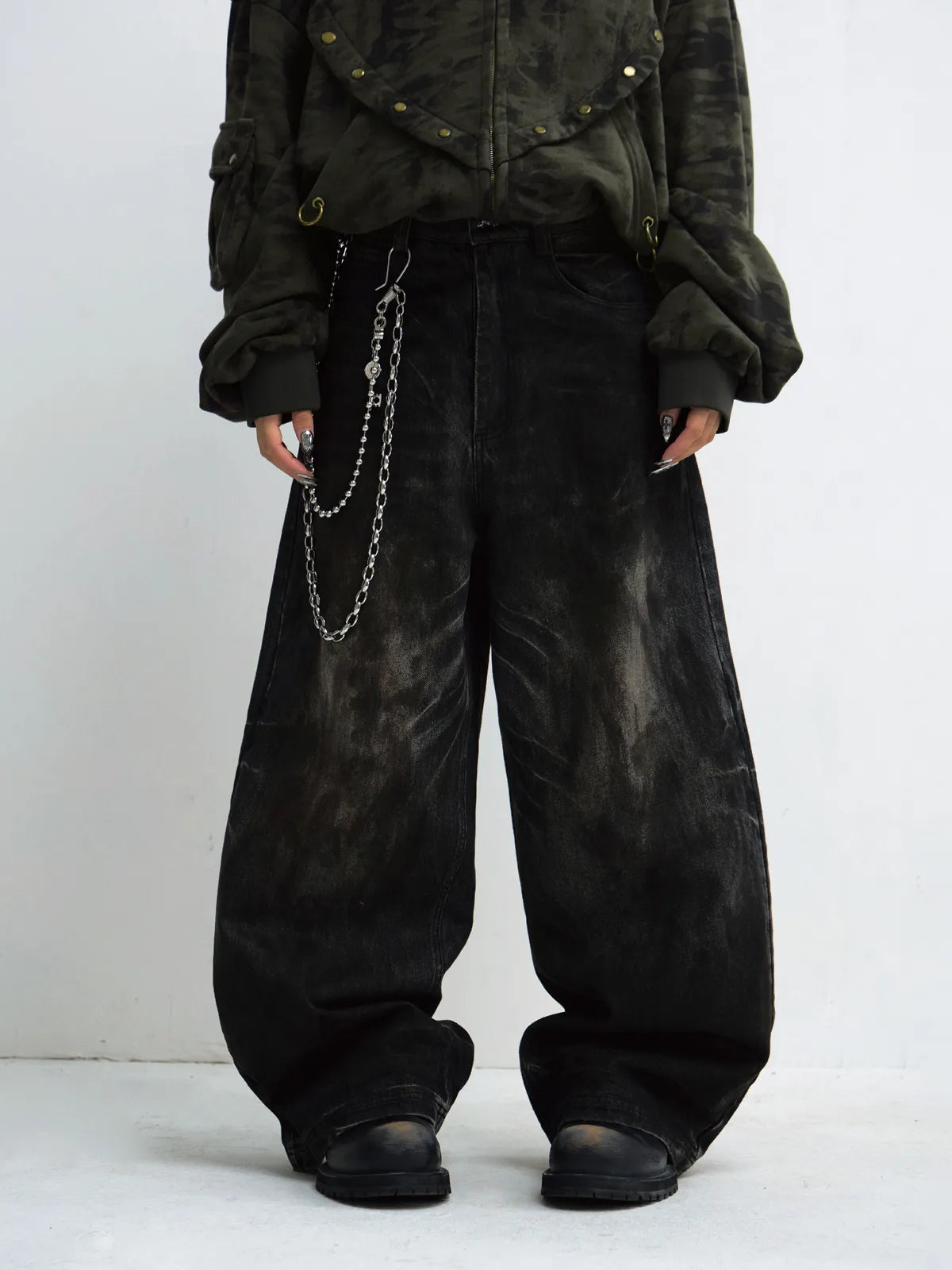 Peoplesense Vintage Washed Black Wide Leg Jeans