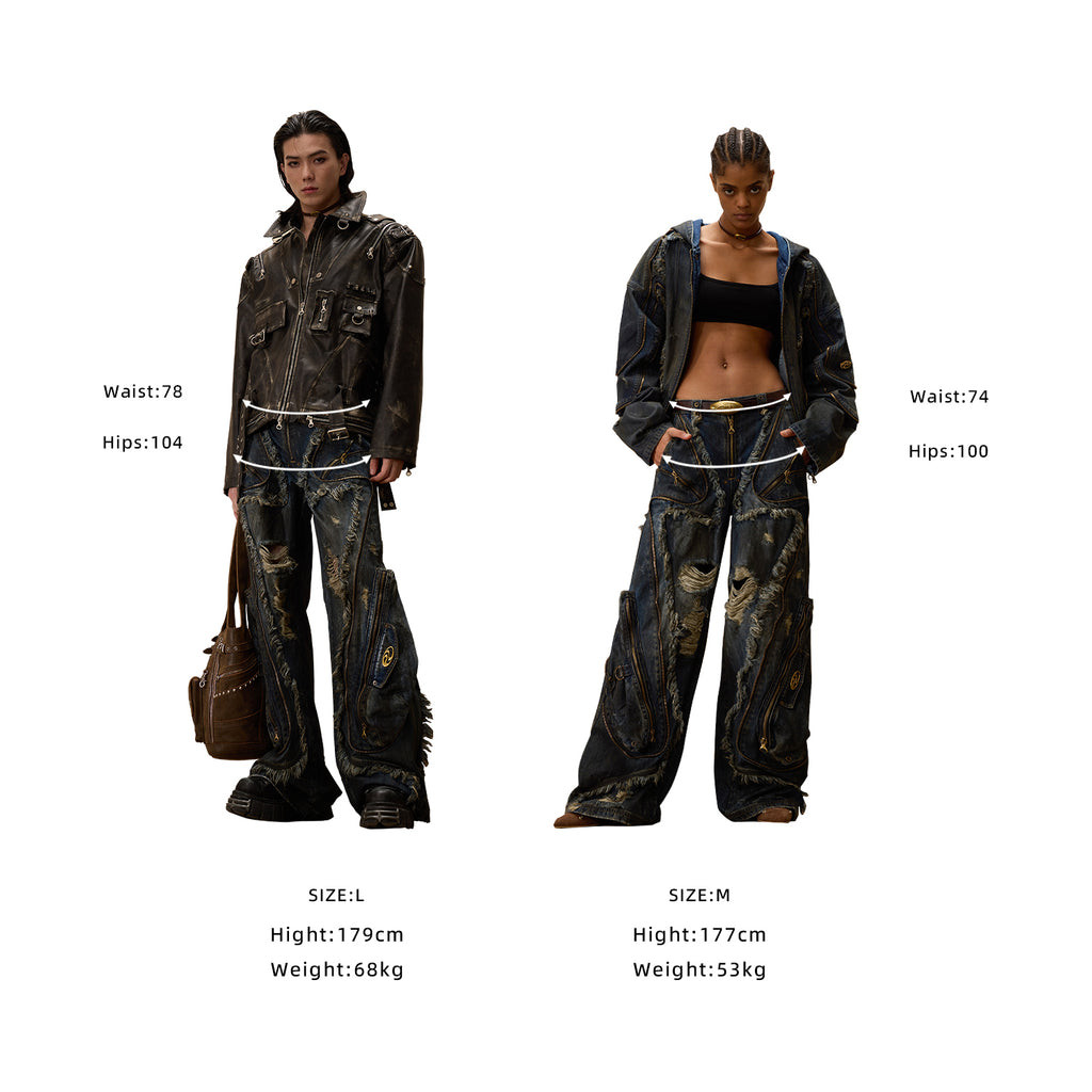 • Standard Fit• 100% Cotton.• Unisex.• Heavy Denim.• Brand Logo Zipper.• Raw Edge &Amp; Ripped Jeans.
