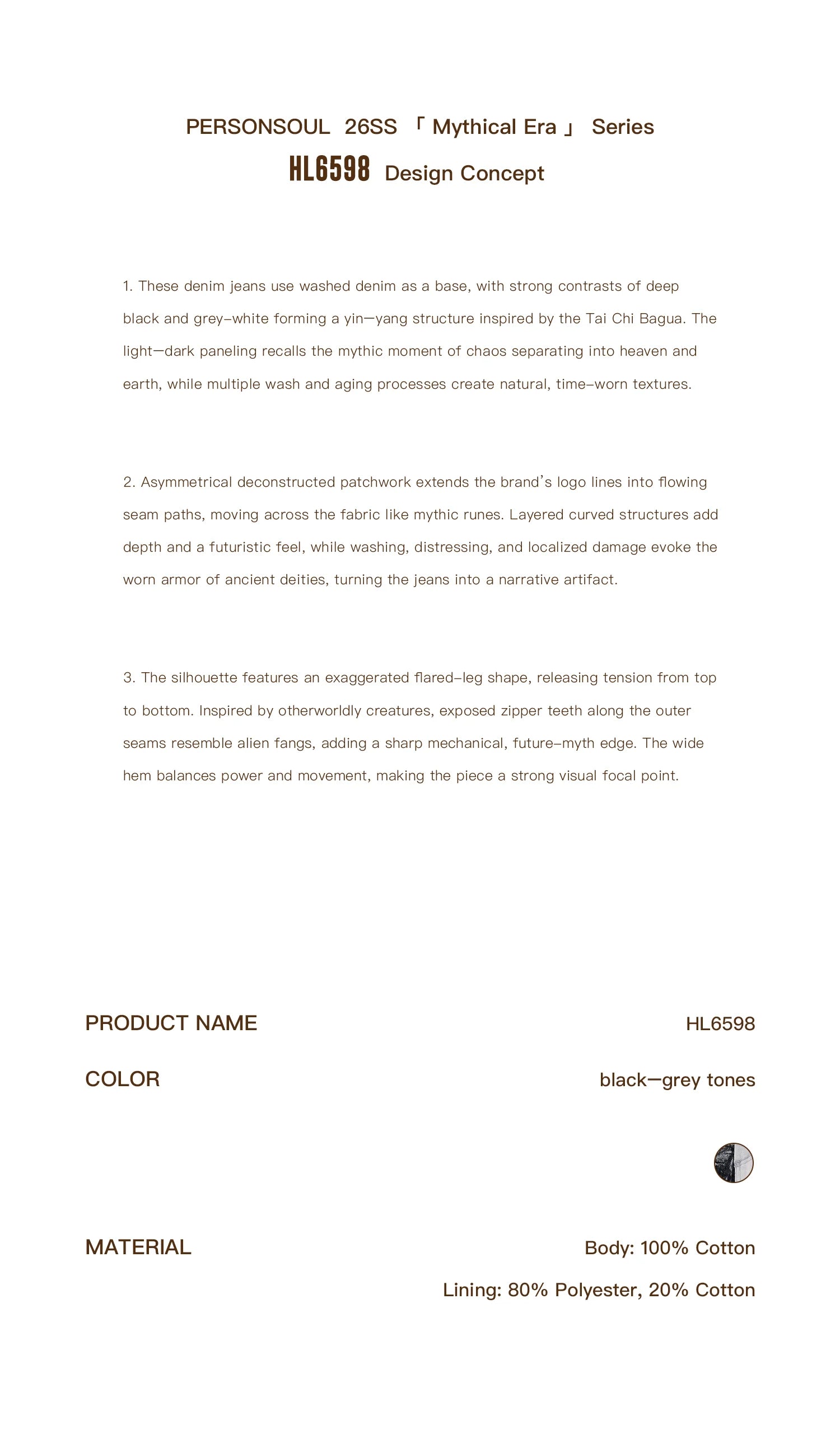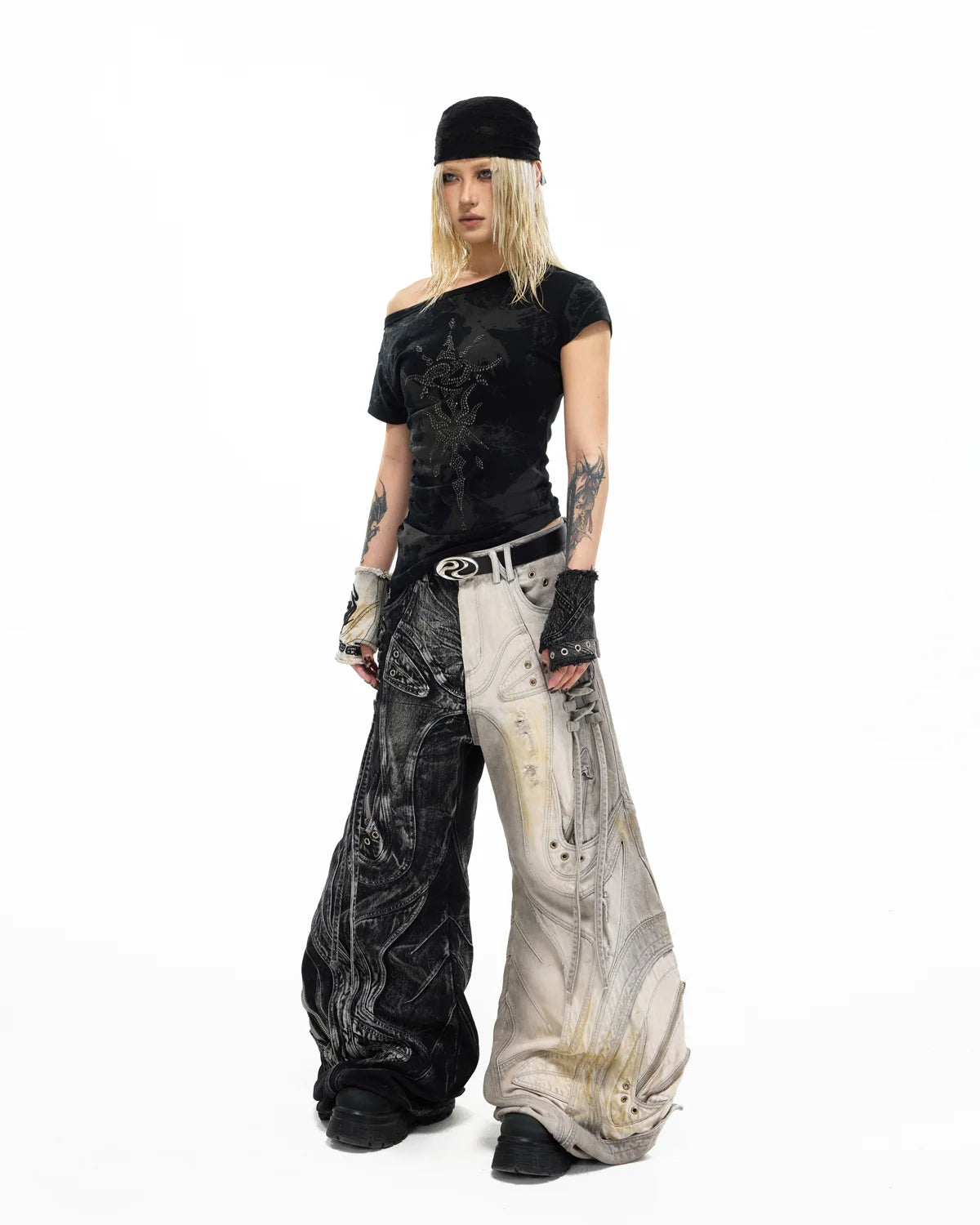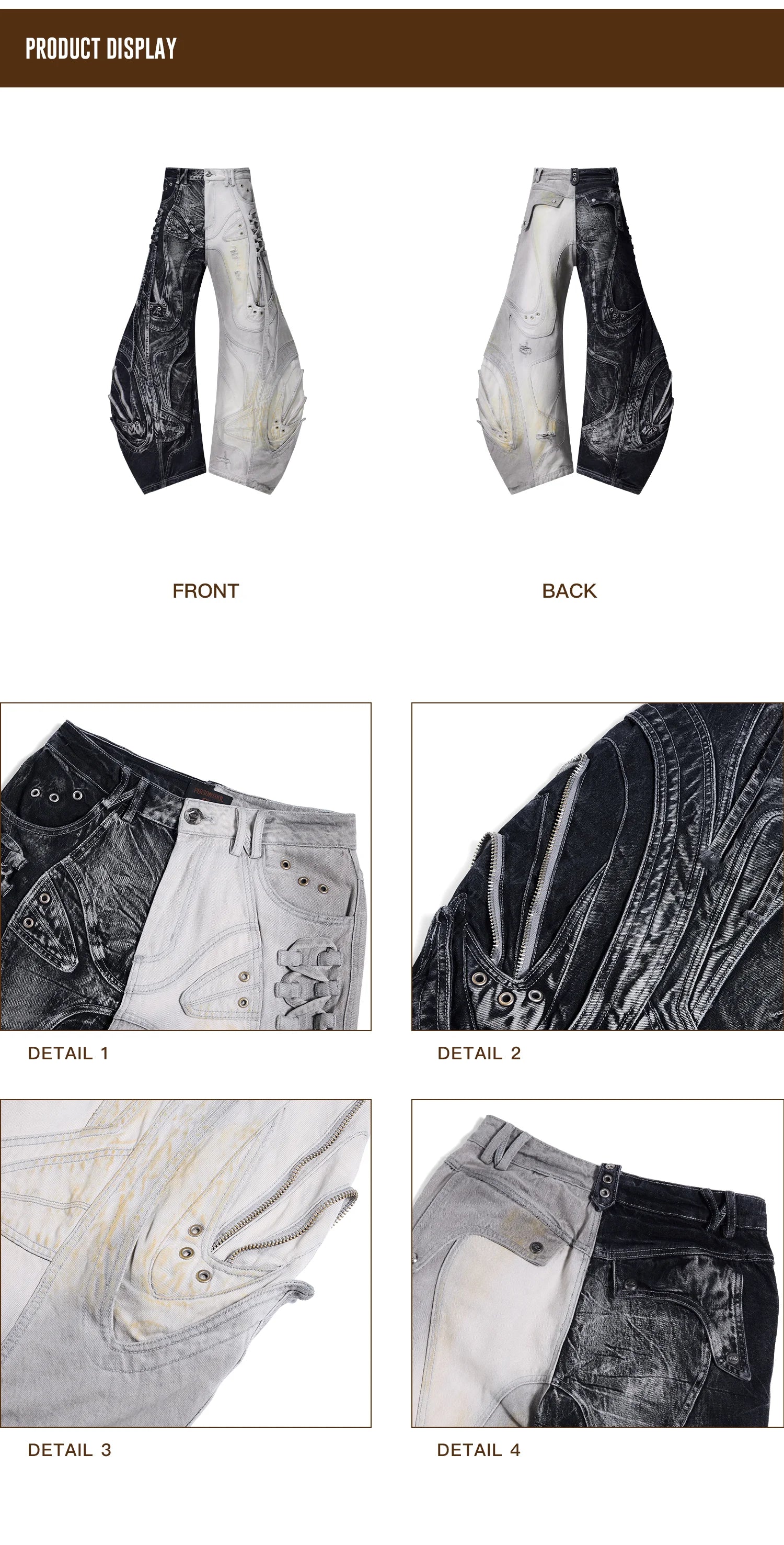 Personsoul Deconstructed Exaggerated Flared Patchwork Jeans Yin-Yang Ver. (Random Color)
