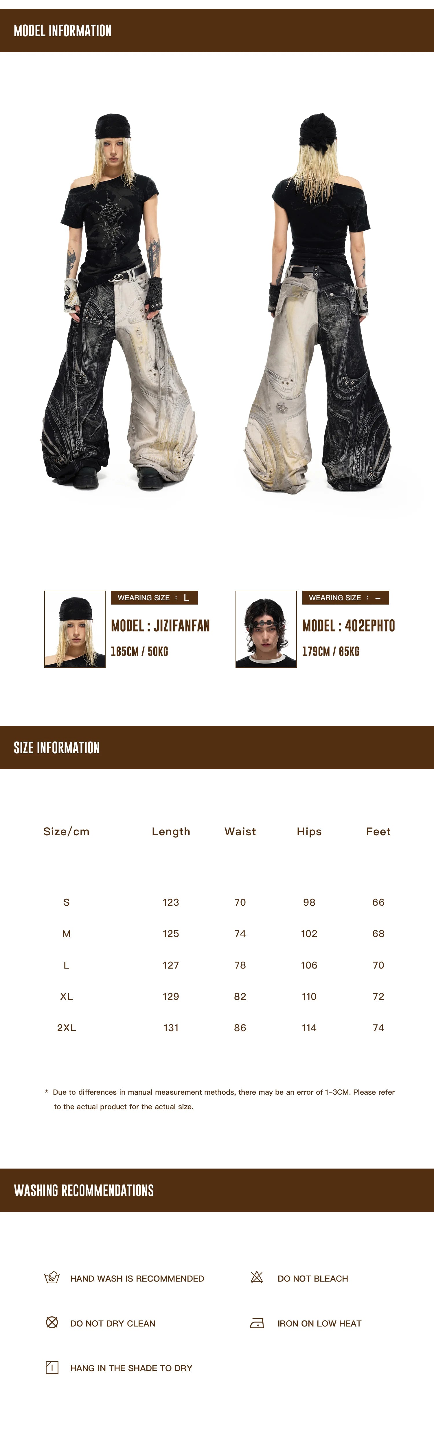 Product Info & Size Chart Details