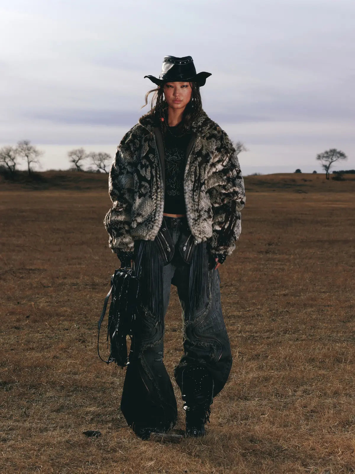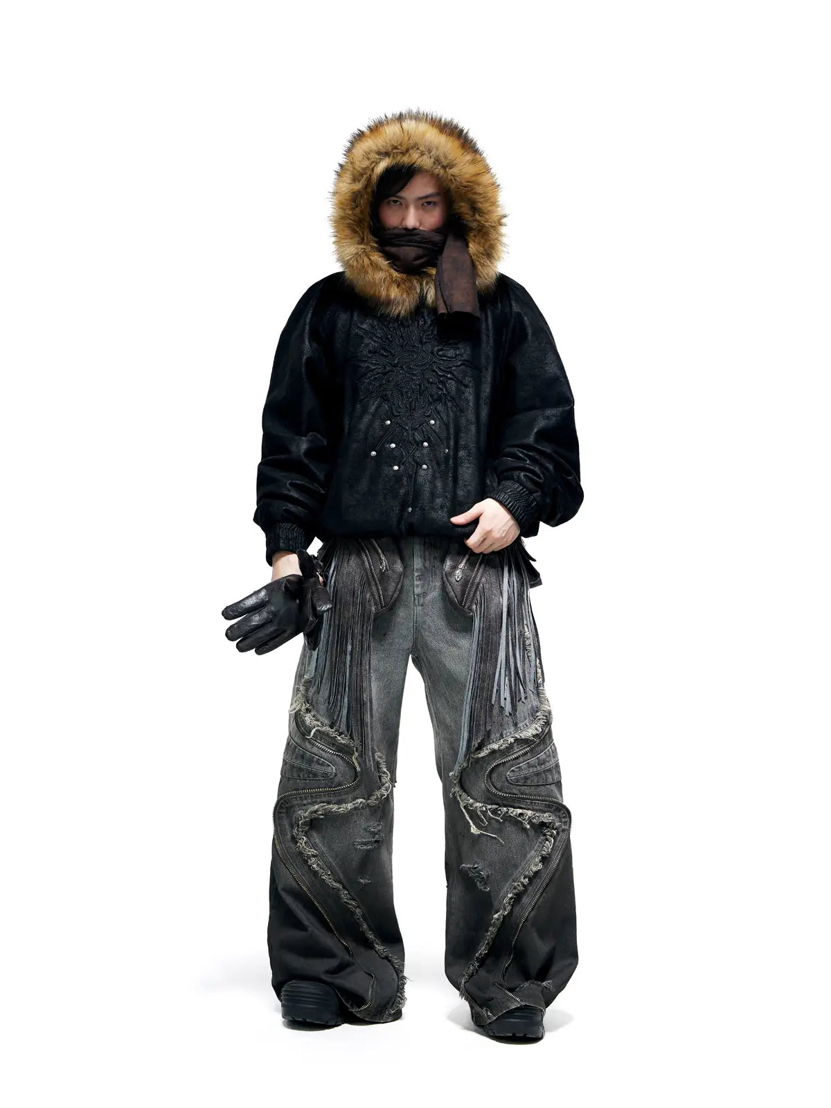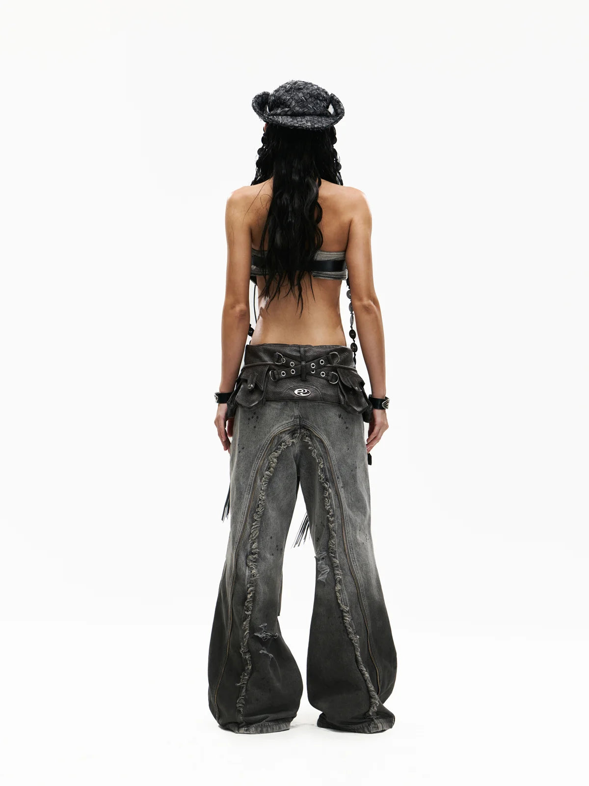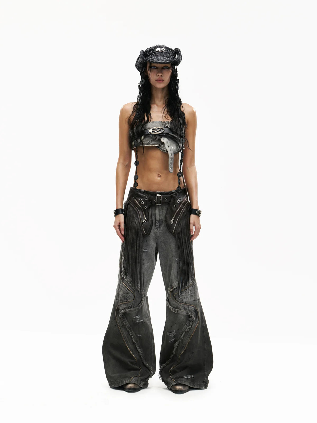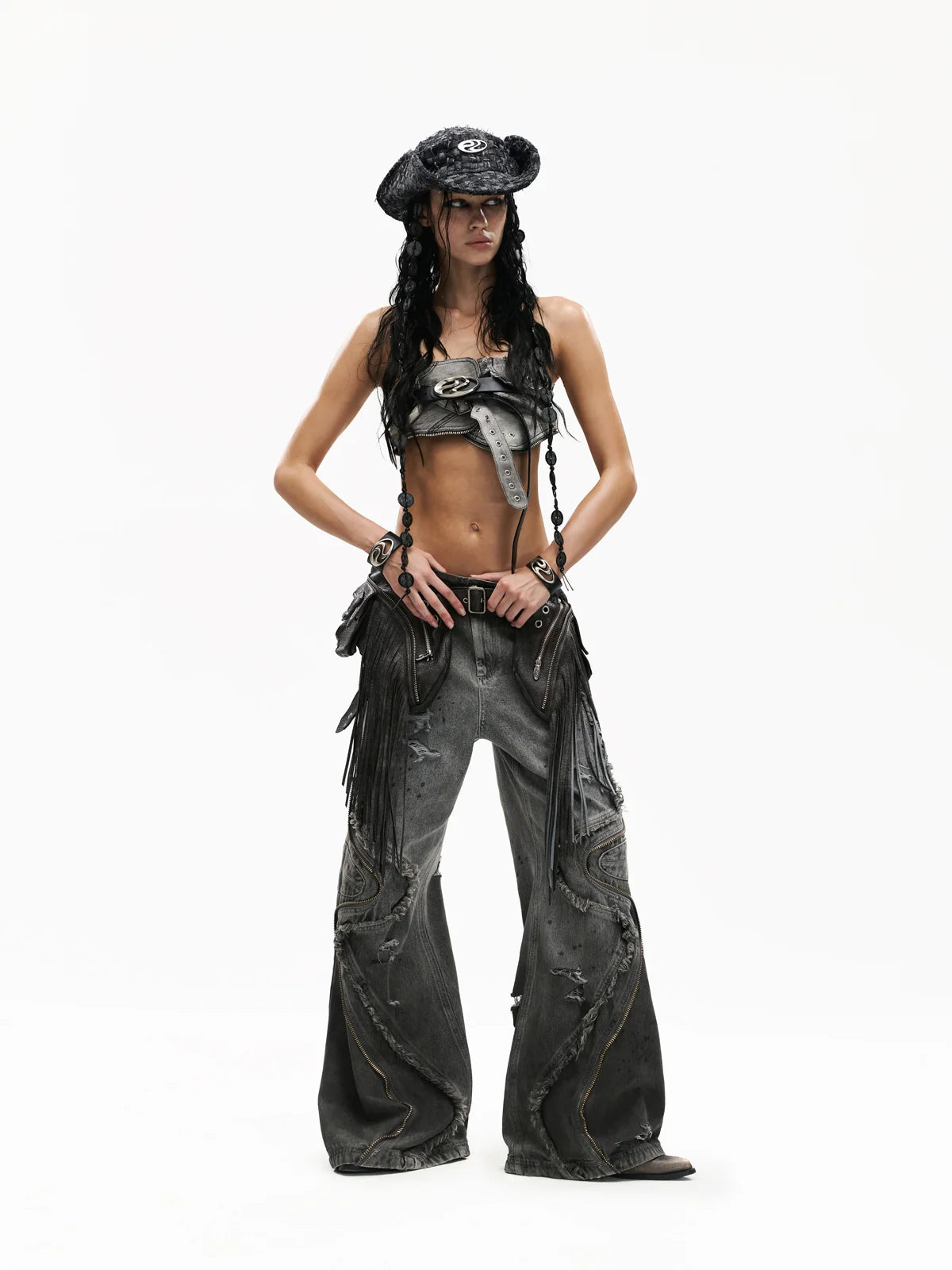 Personsoul Fringed Belt Raw Edge Jeans
