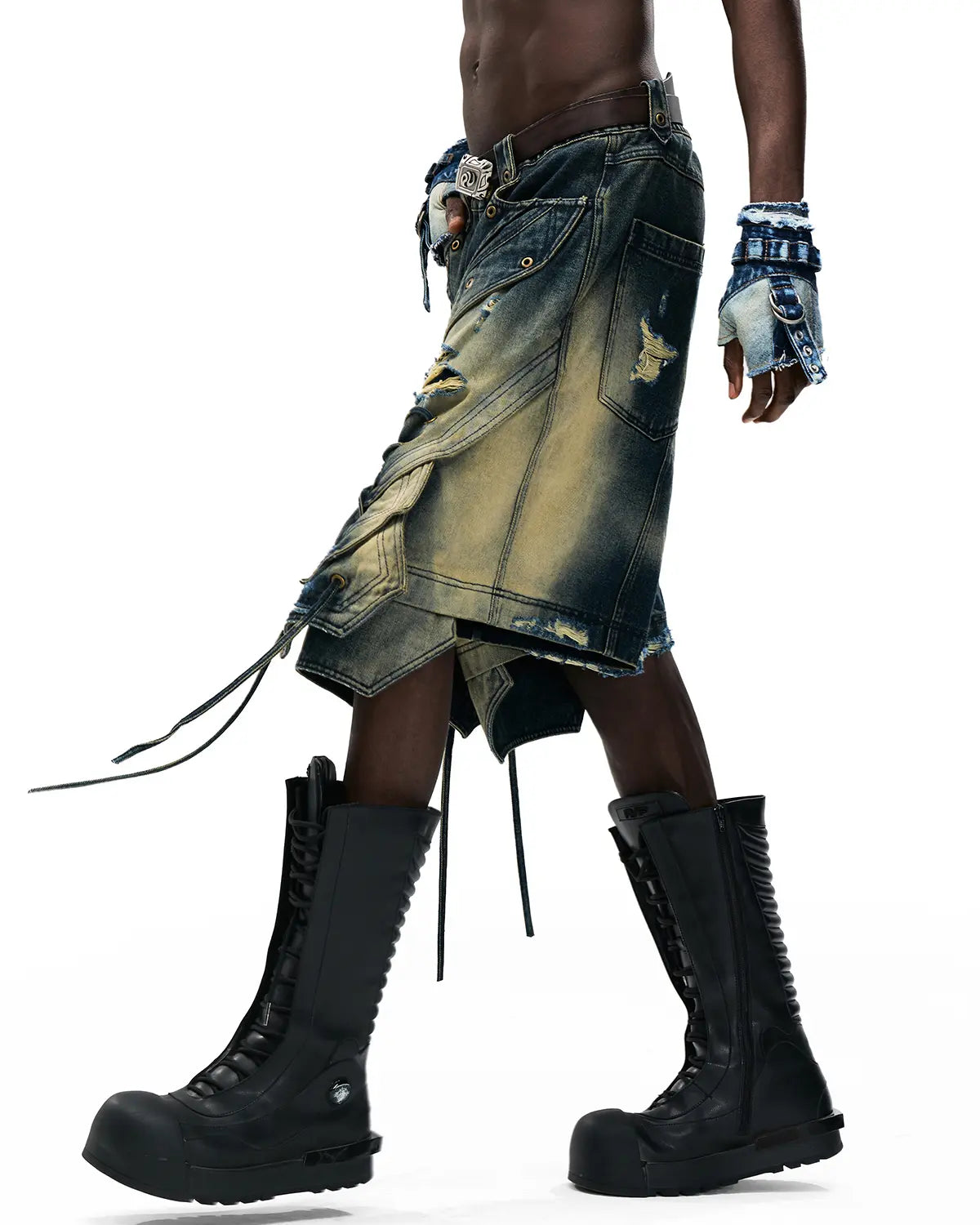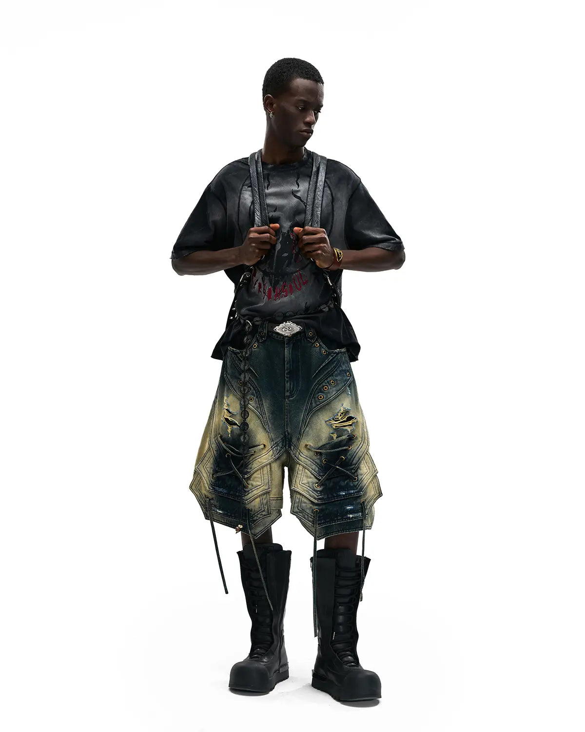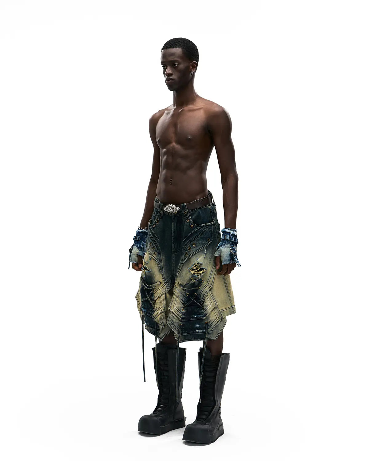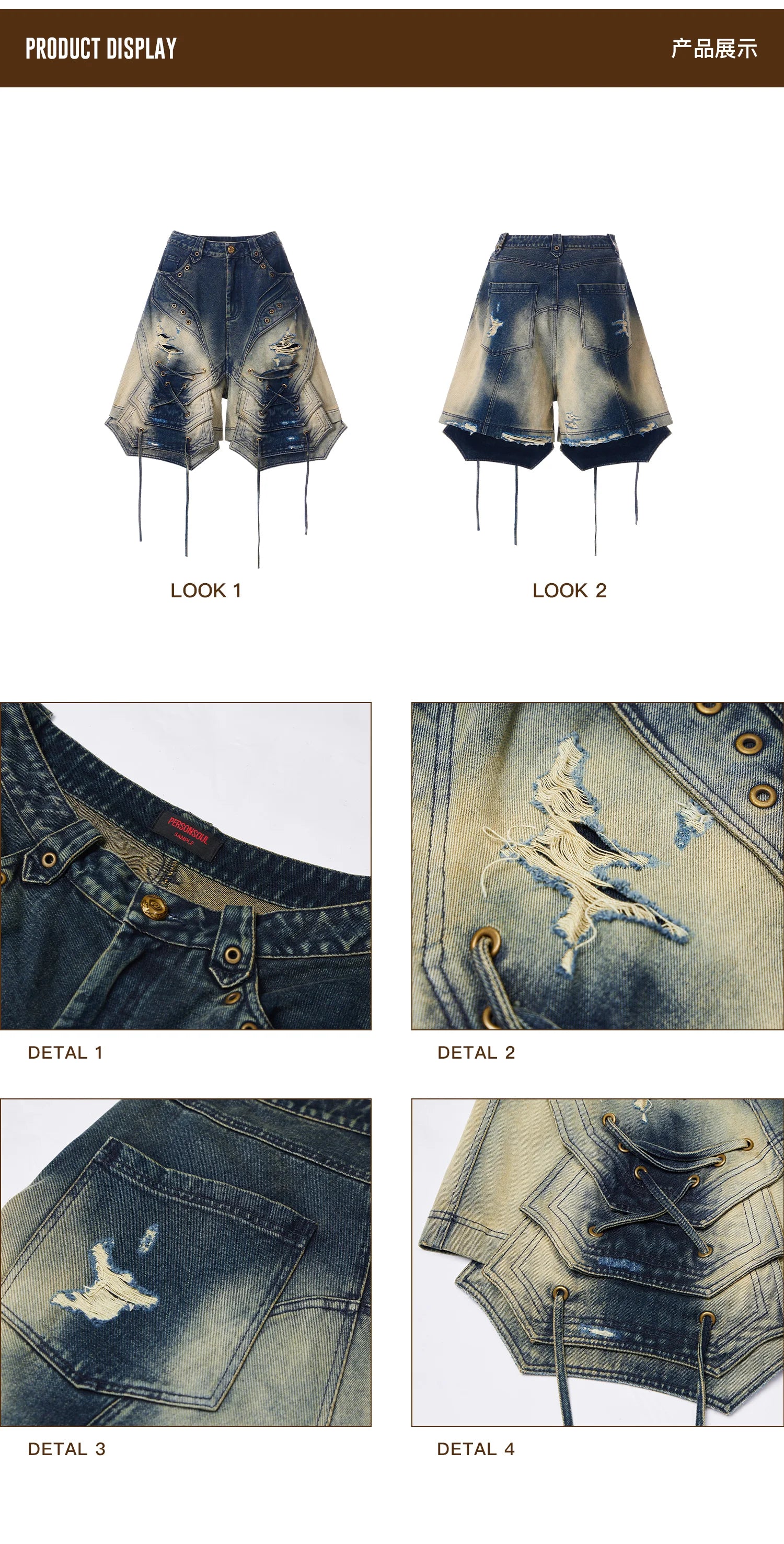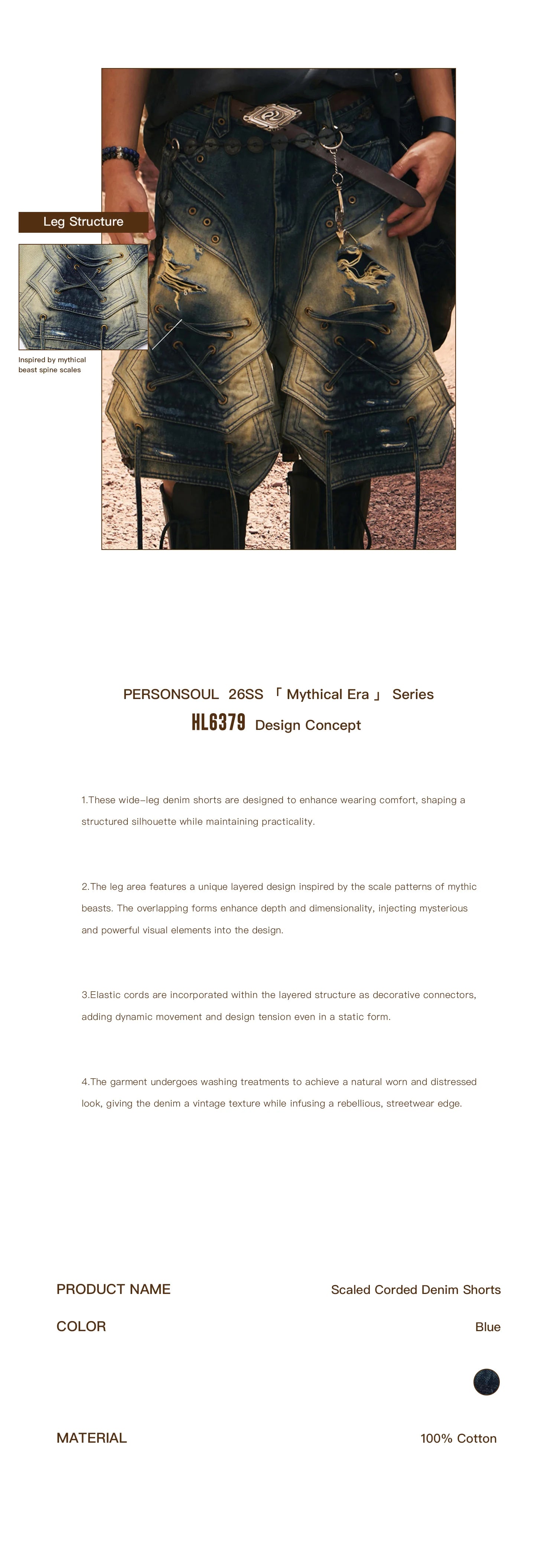 Personsoul Scaled Corded Denim Shorts