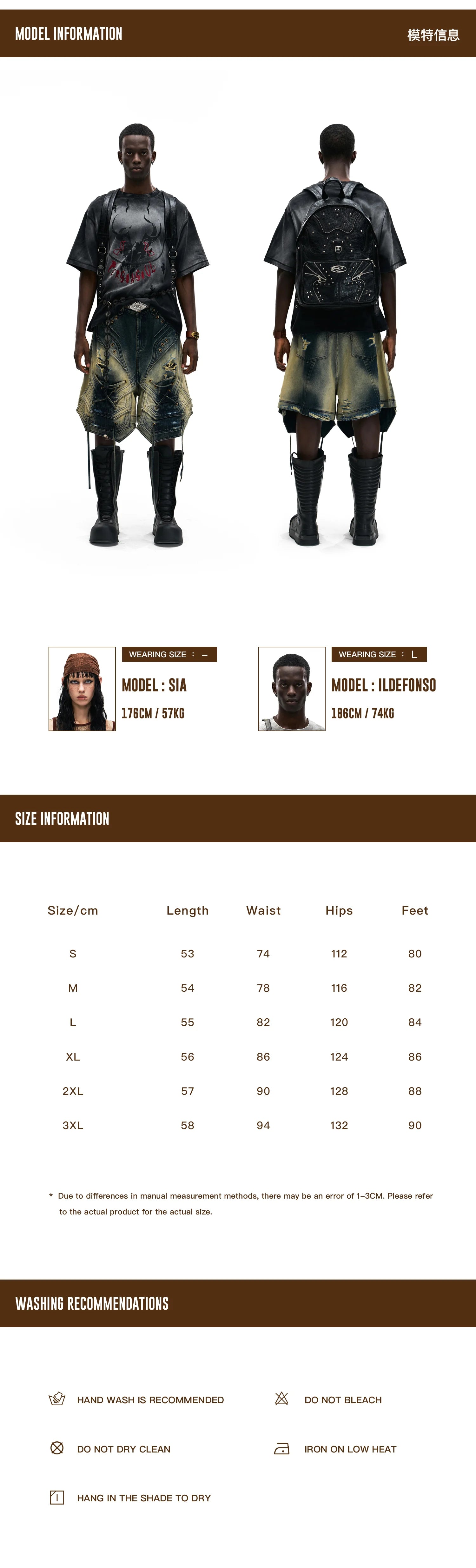 Product Info & Size Chart Details