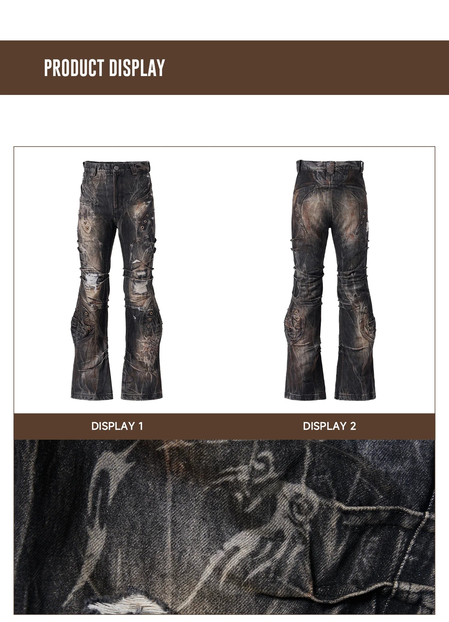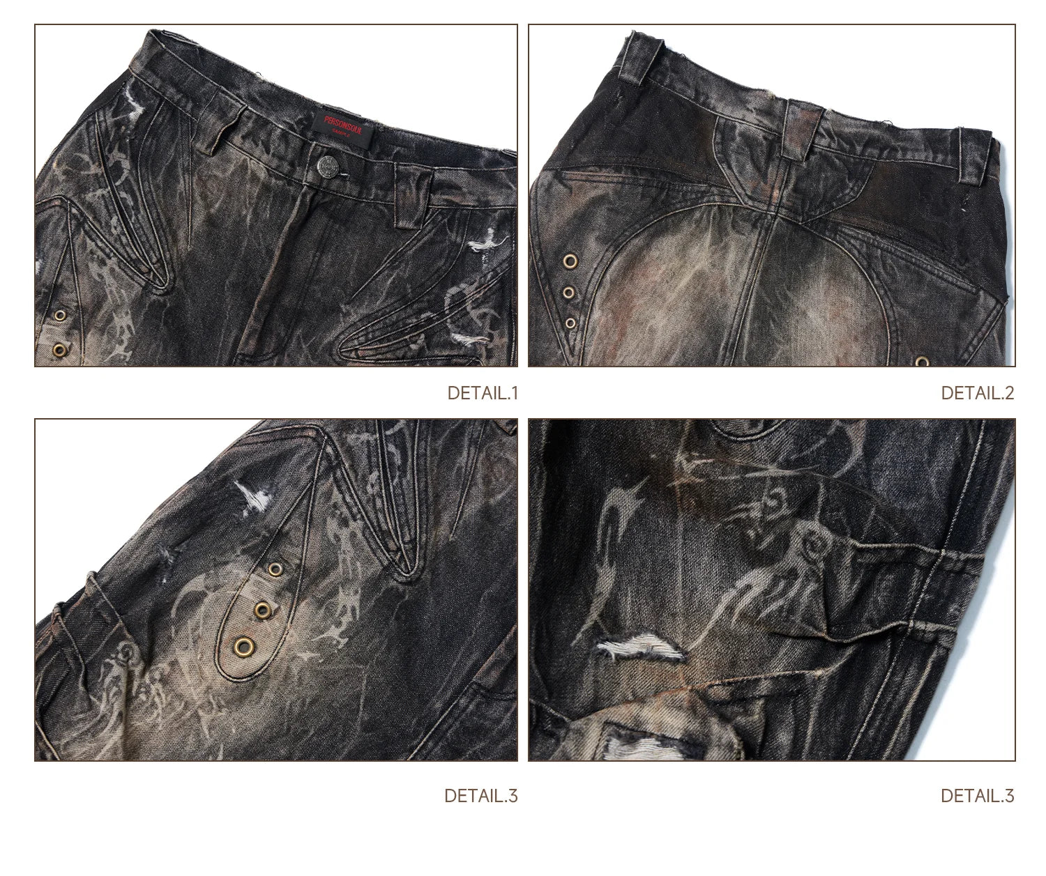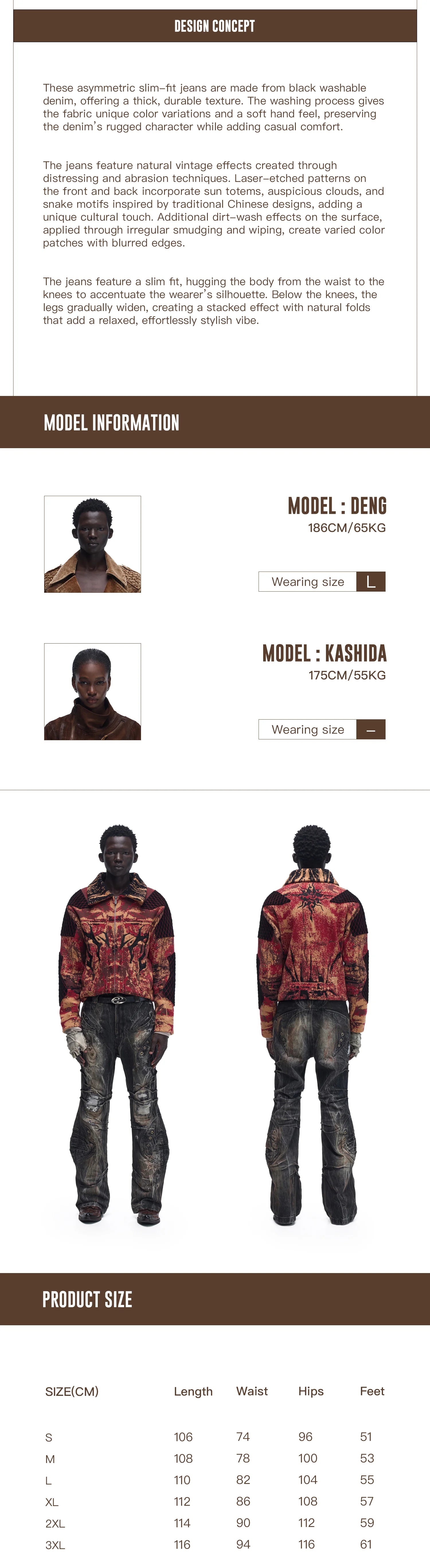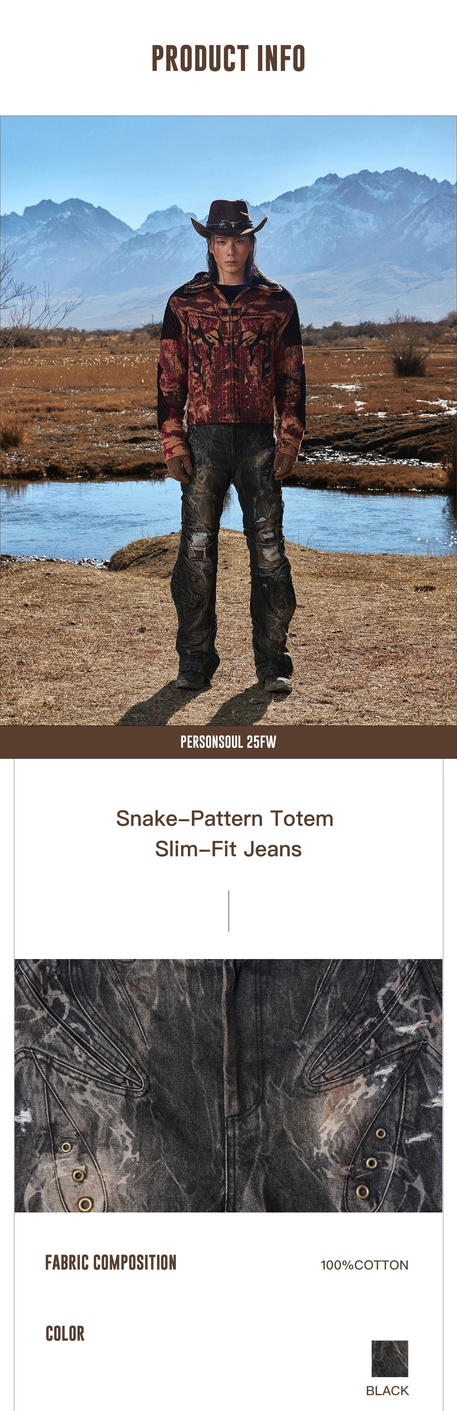 Personsoul Snake-Pattern Totem Slim-Fit Jeans