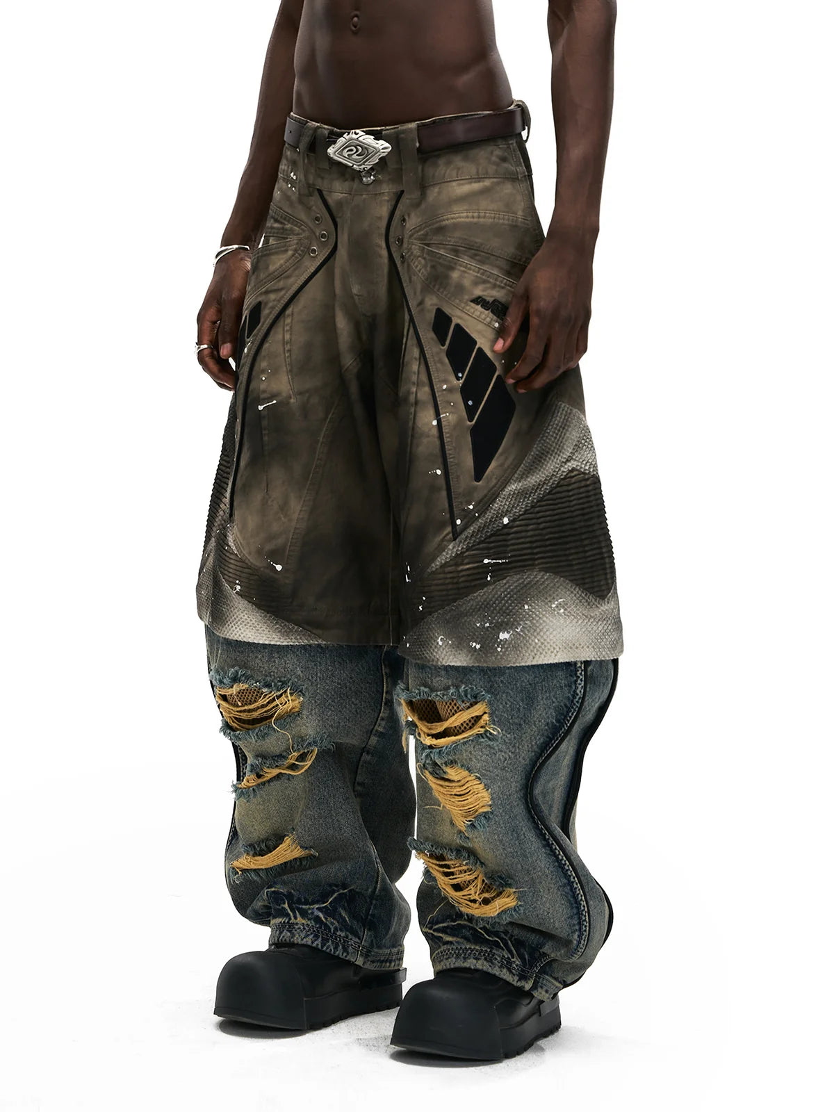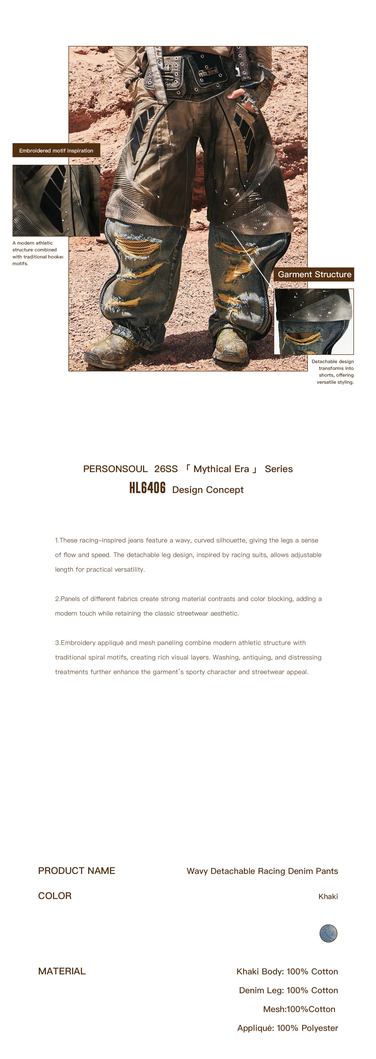 Personsoul Wavy Detachable Racing Denim Jeans
