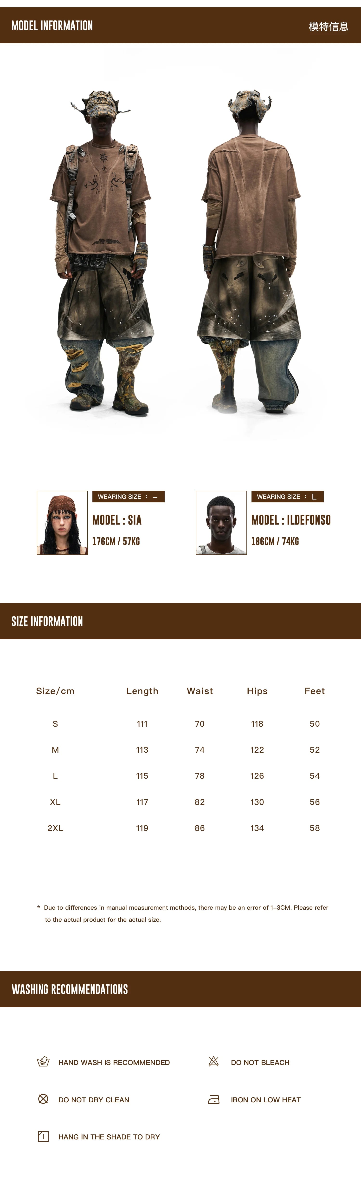 Product Info & Size Chart Details