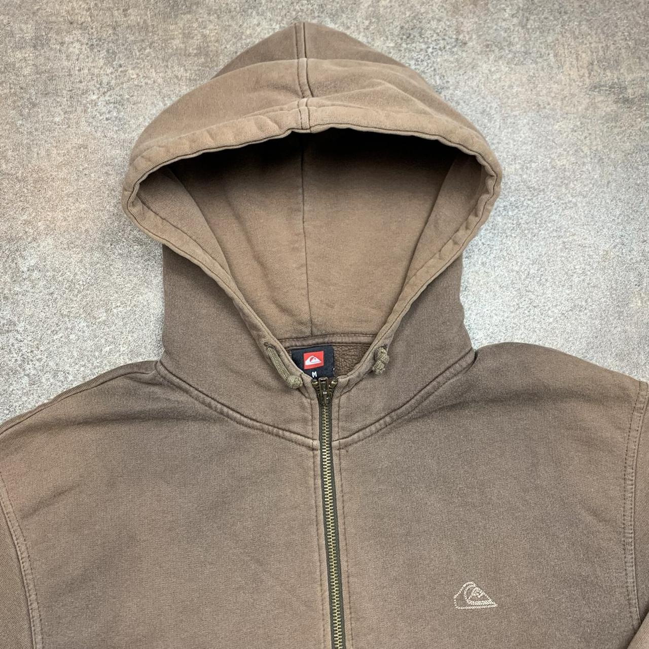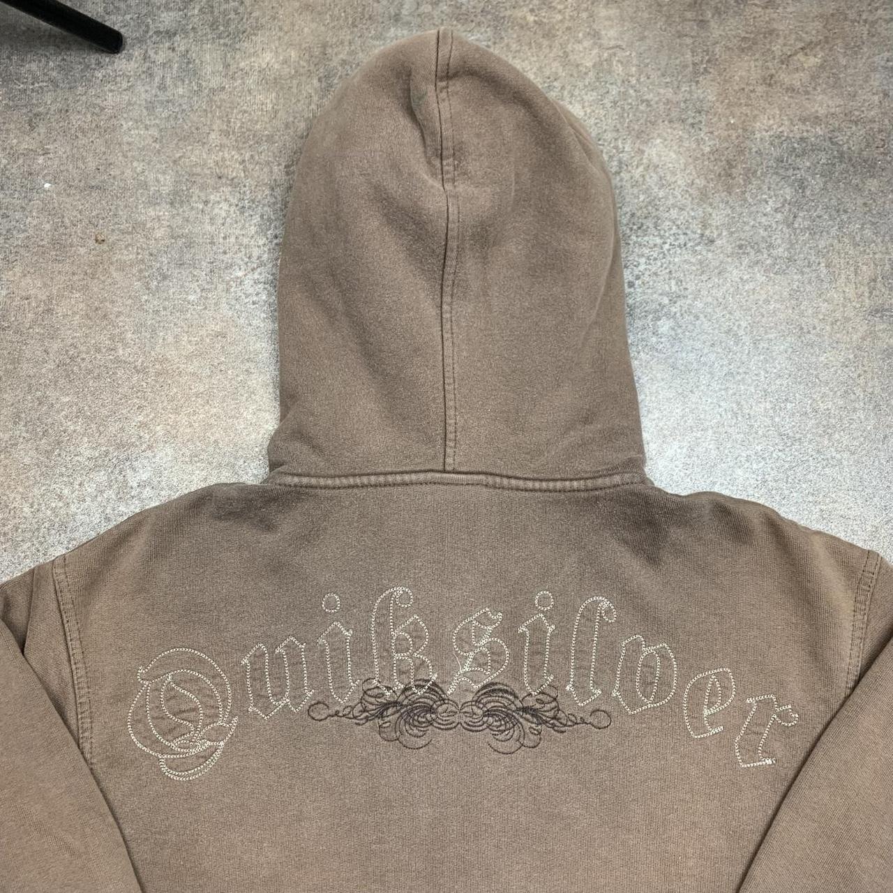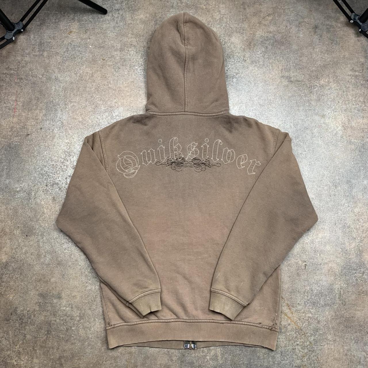 Sick Quiksilver hoodie with a large embroidered graphic across the back, coloured brown all over & in good second hand condition with some scuffs on the waistband & marks on the sleeves / hood.
