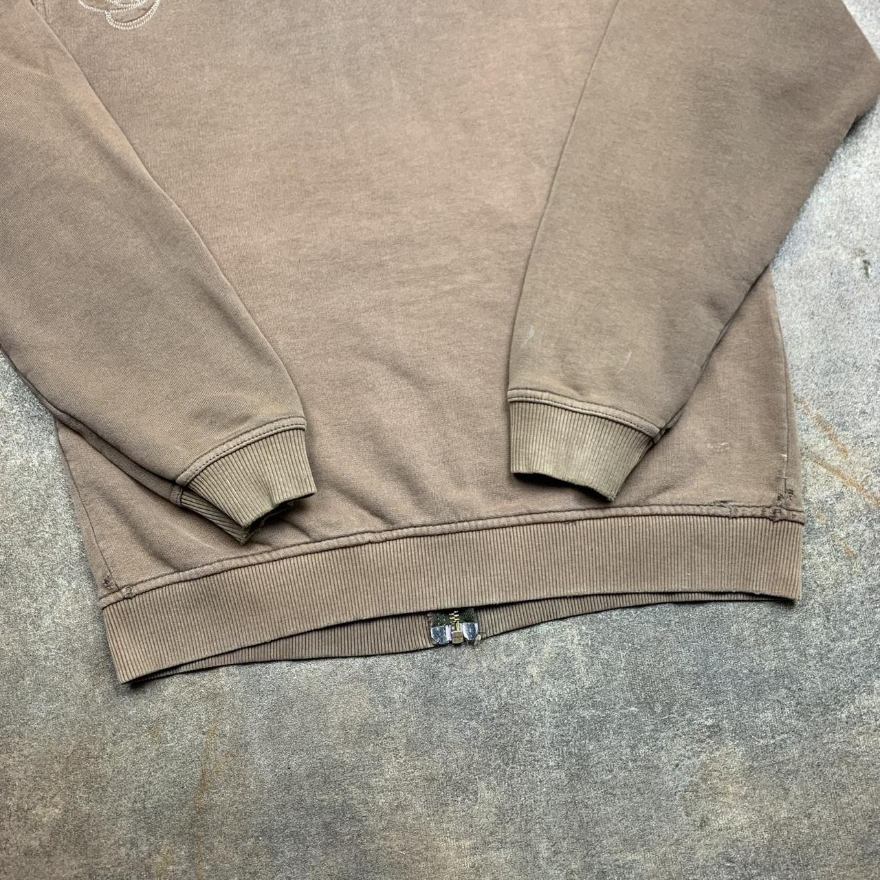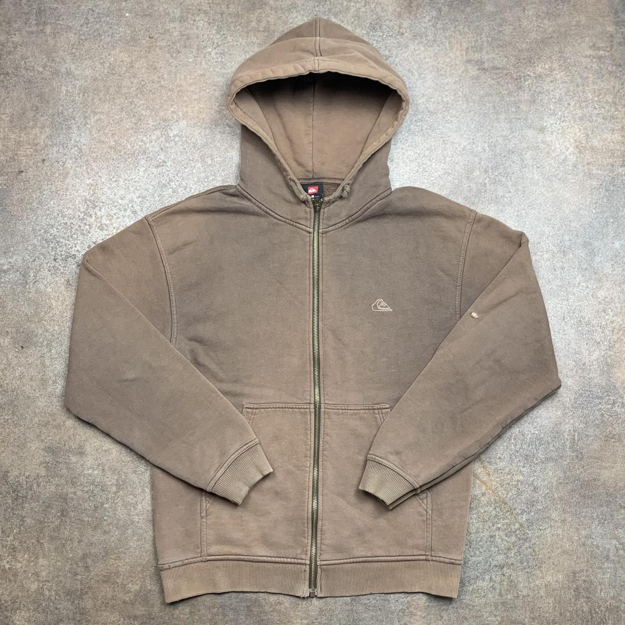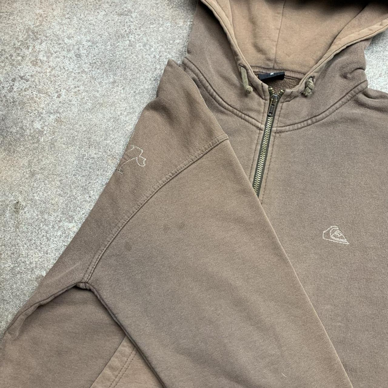 Sick Quiksilver hoodie with a large embroidered graphic across the back, coloured brown all over & in good second hand condition with some scuffs on the waistband & marks on the sleeves / hood.