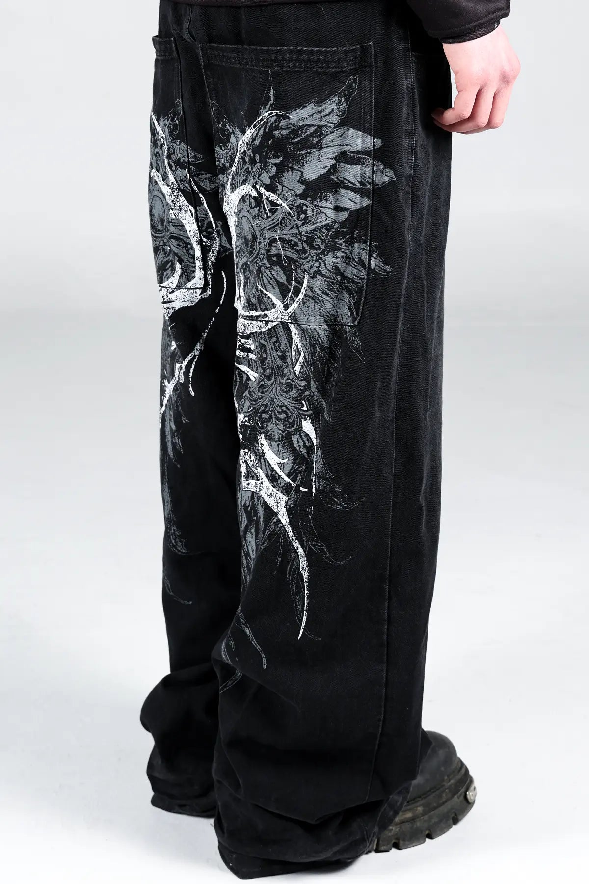 Durable mid-weight denim with a relaxed, baggy fit built for everyday wear. Premium cotton comfort, wide leg, and a long-lasting screen print that holds up.