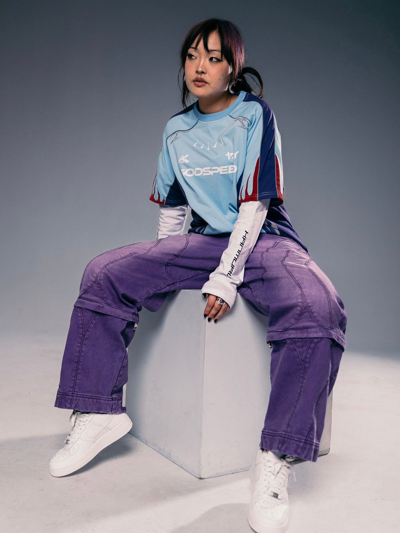 These pants are made of High-Quality Washed Denim. We added contrast colour designs, back foot straps and irregular back pockets to make it unique and comfortable to wear. Also, we made it convertible into shorts to make sure you can rock them during the summer weather.