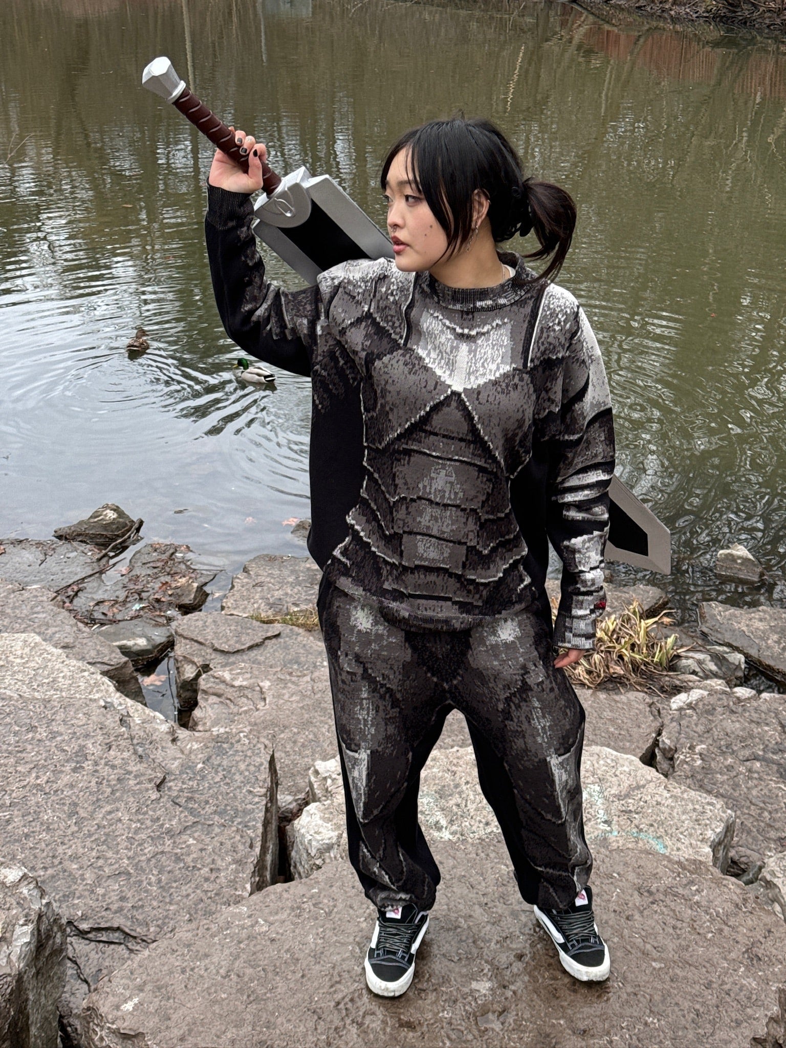 This is our classic knitted sweater made of High-Quality cotton. With embroideries on the back and the sleeve.